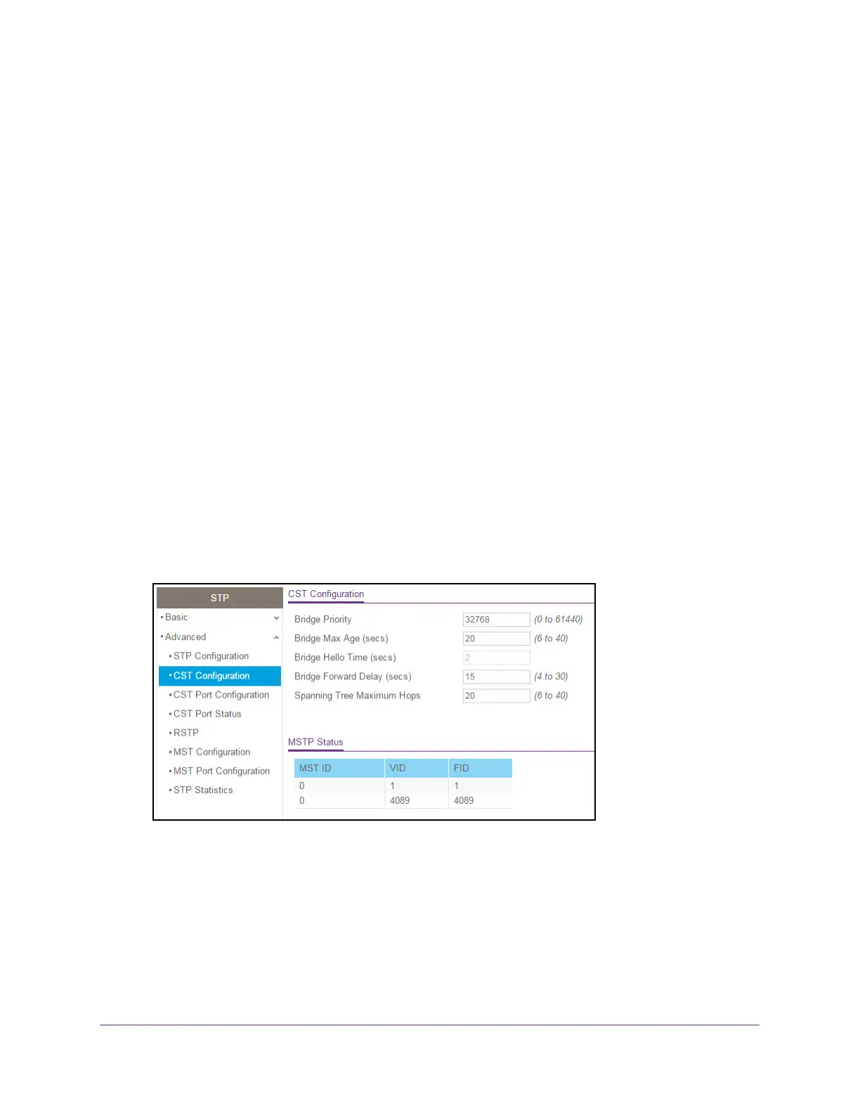 Spanning Tree (CST). The range is from 0 to 61440. The bridge priority is a multiple