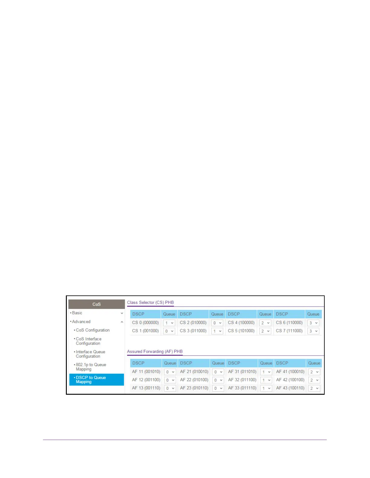 6. For each DSCP value, select from the corresponding Queue menu which internal traffic