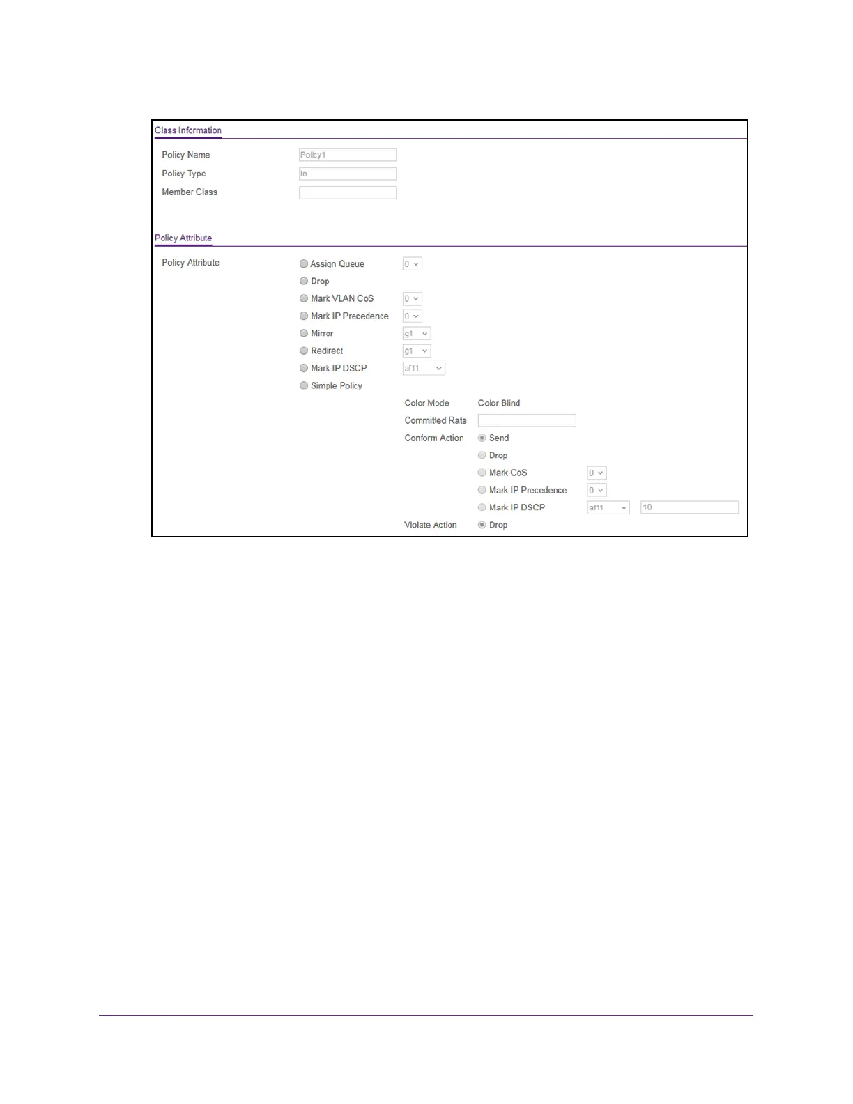 By default, this simple policy is color blind, and color classes do not apply. A simple