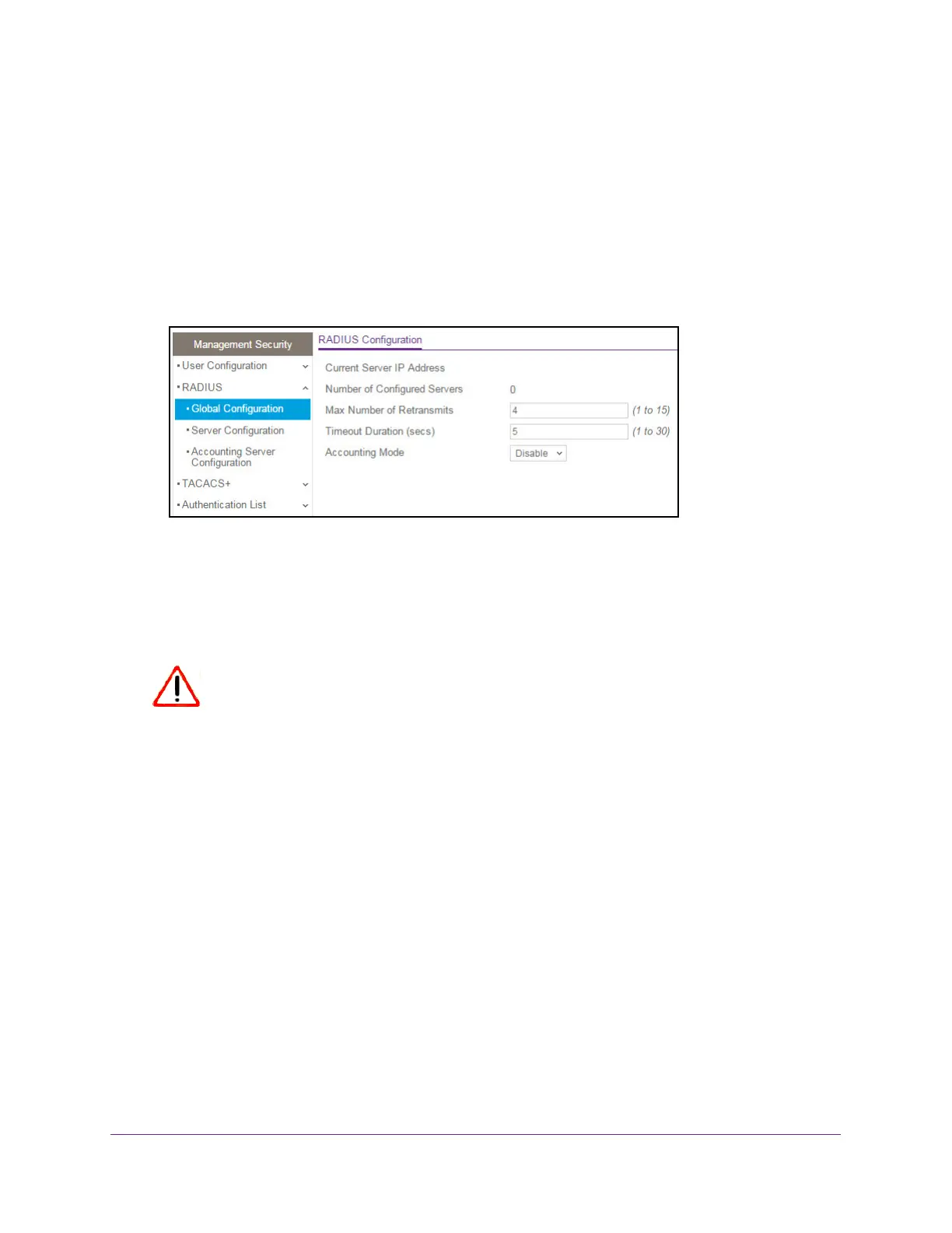 5. Select Security > Management Security > RADIUS > Global Configuration.