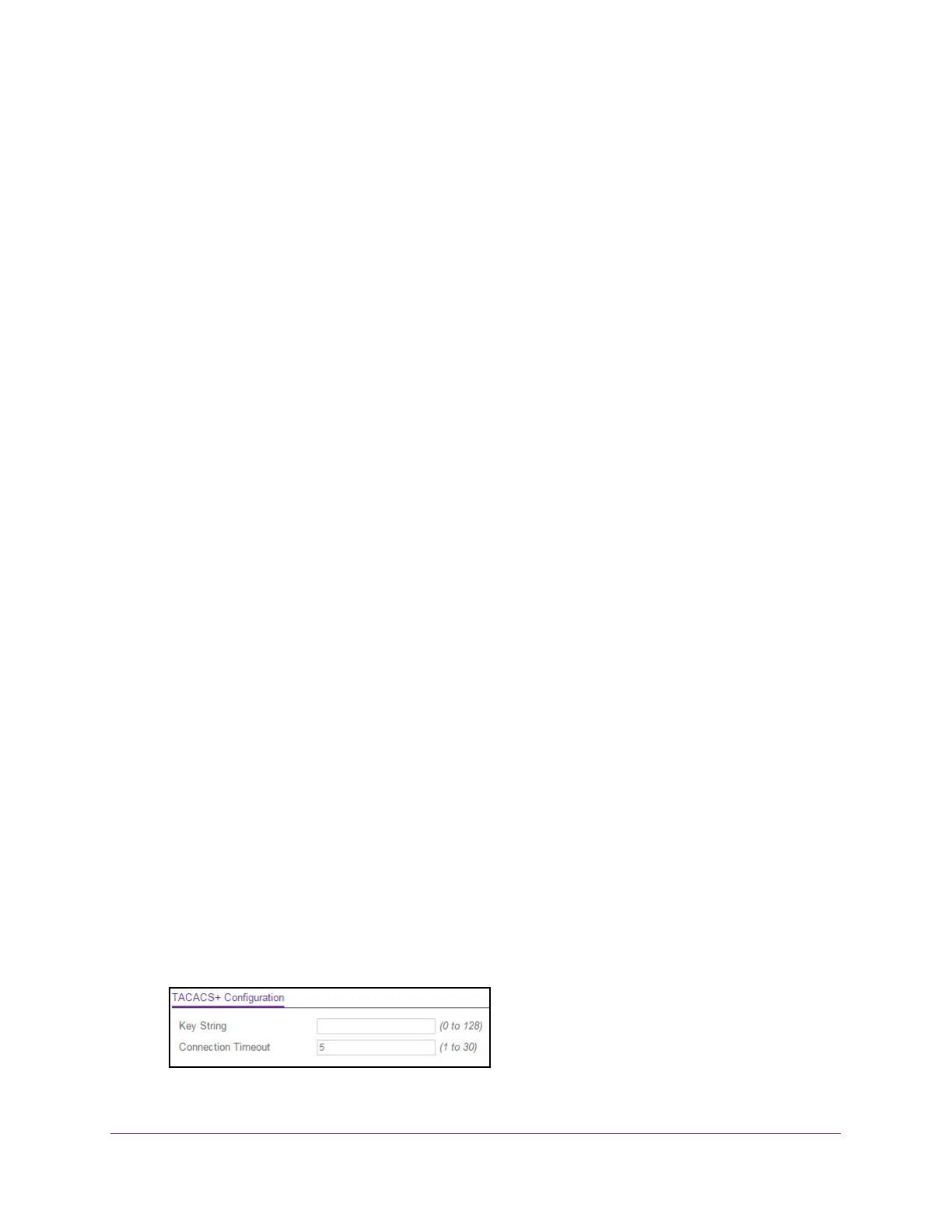 The TACACS+ Configuration page contains the TACACS+ settings for communication