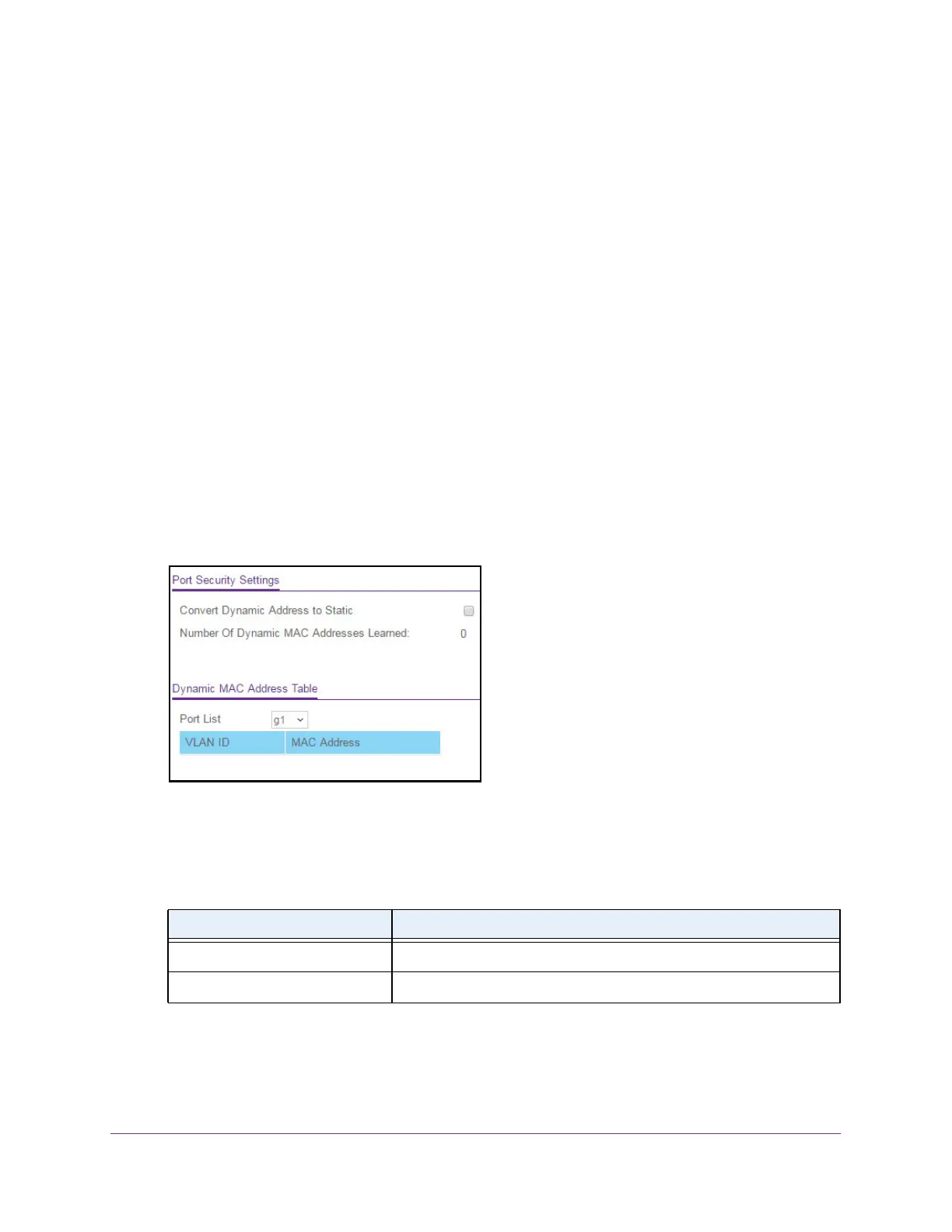 MAC Address The MAC addresses learned on a specific port.