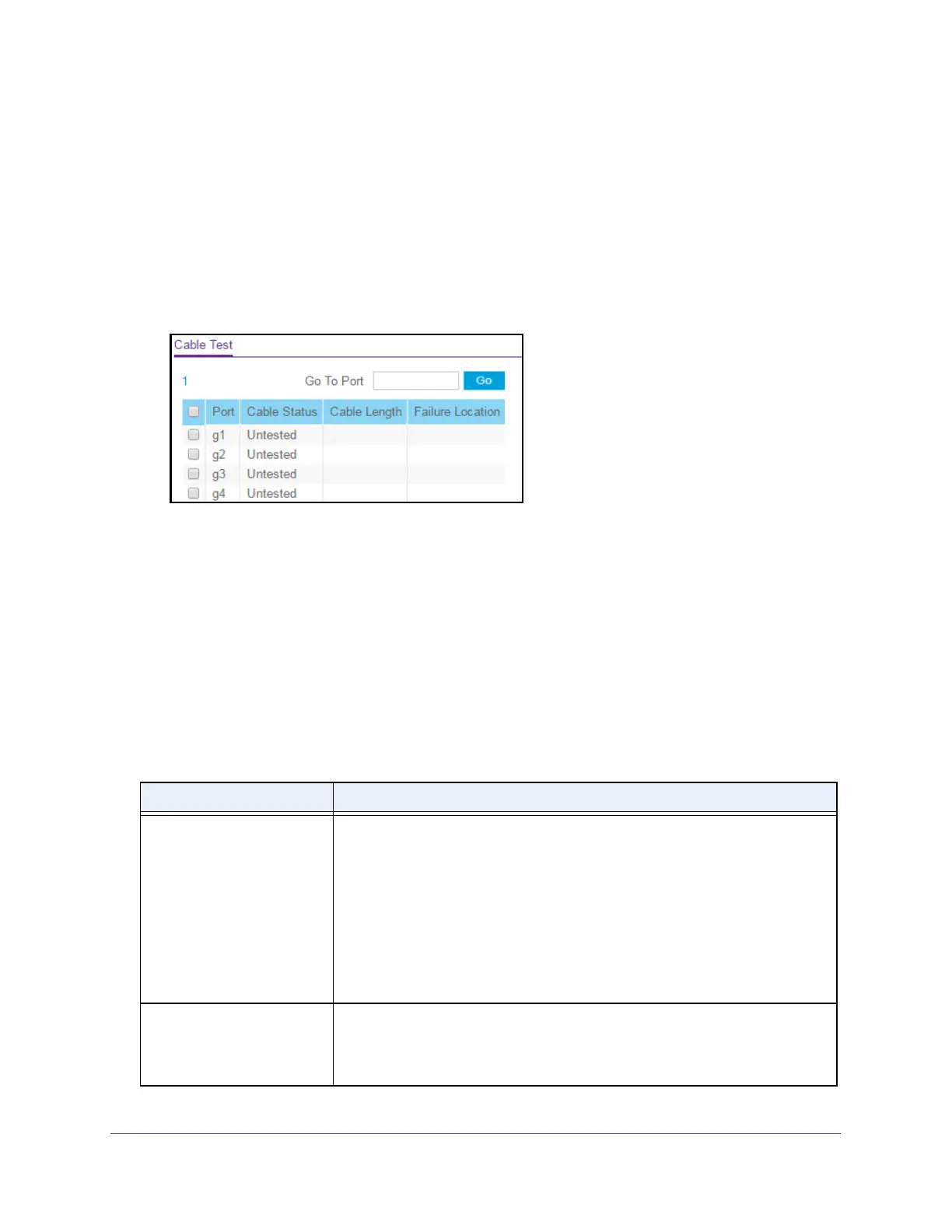 seconds to complete. If the port forms an active link with a device, the cable status is