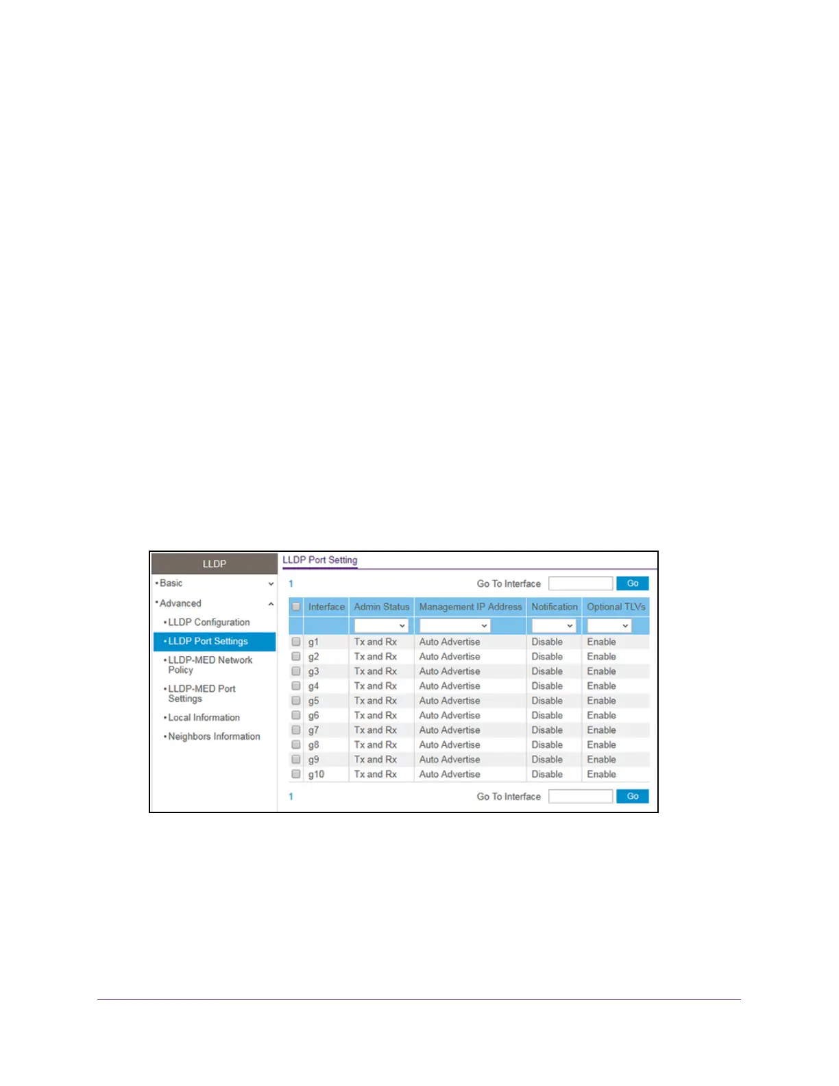 Advanced > LLDP Port Settings.