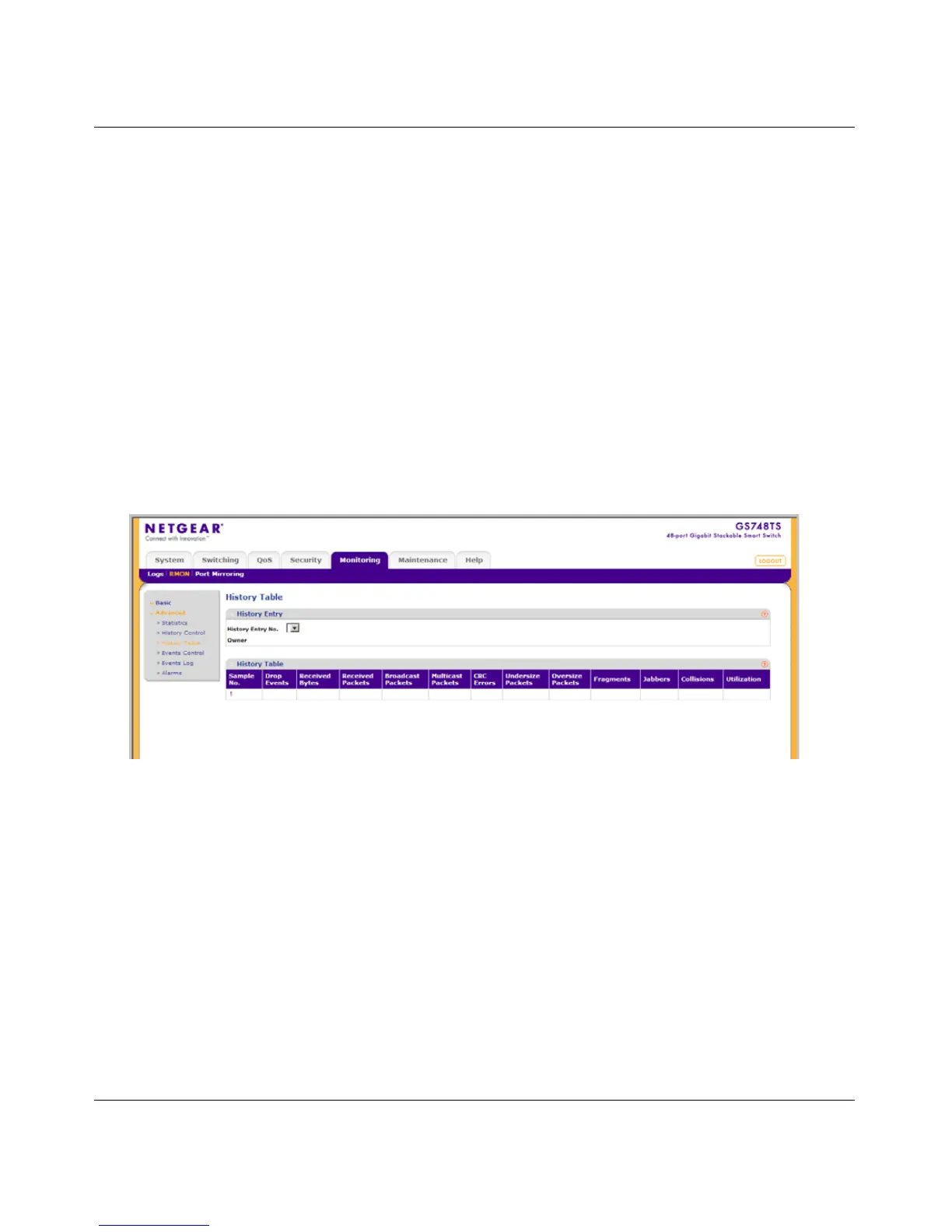 1. Click Monitoring > RMON > Advanced > History Table. The RMON History Table screen
