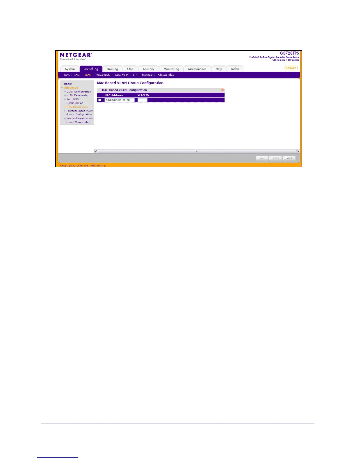 This field is configurable only when a MAC Based VLAN is created. Select this entry.