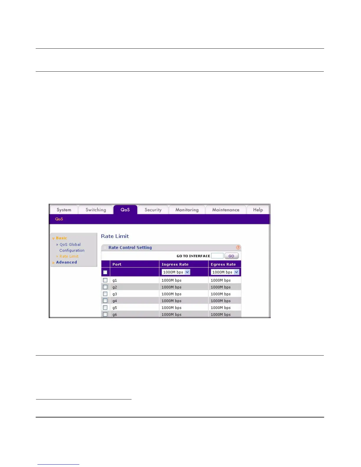1. Select QoS > Basic > Rate Limit. The Rate Limit | Rate Control Setting screen will display.
