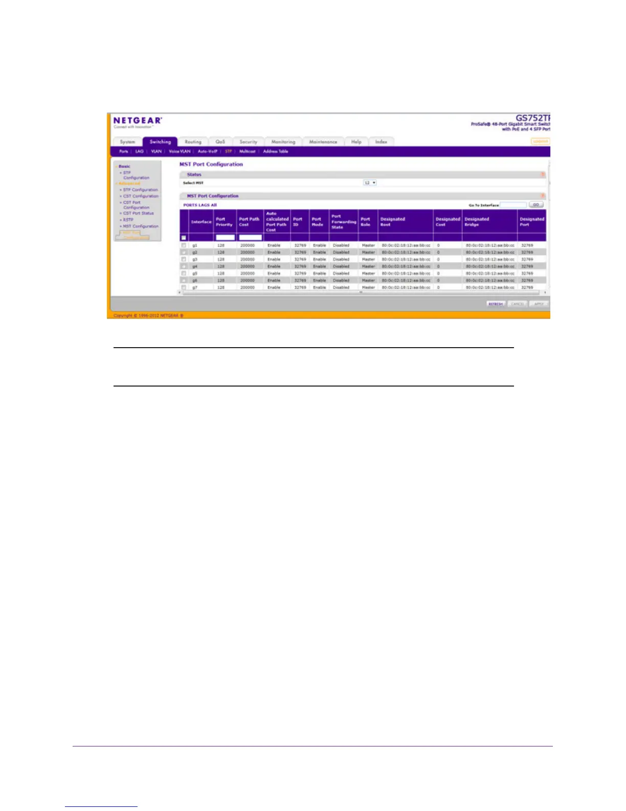 • Port Priority. The priority for a particular port within the selected MST instance. The