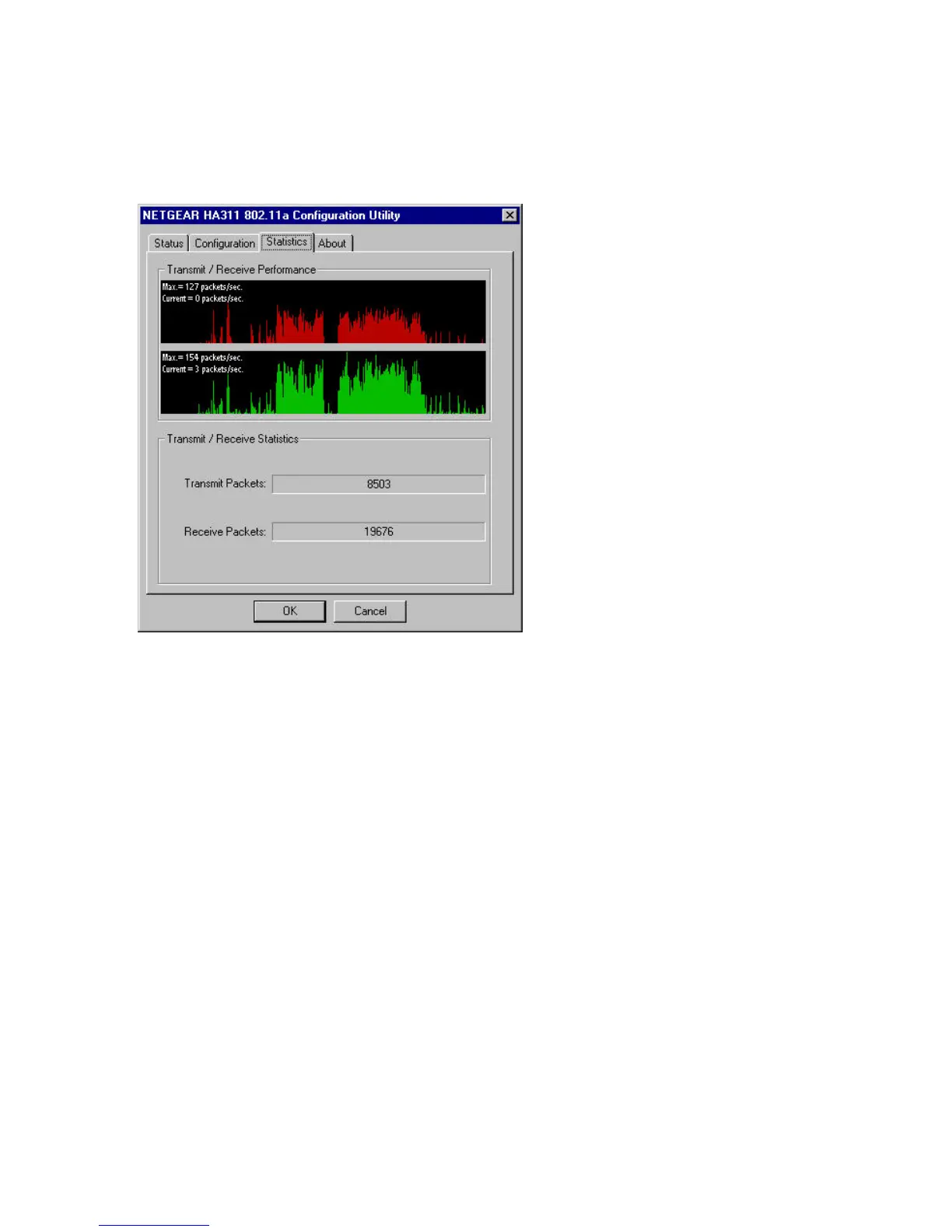 The Statistics section of the NETGEAR HA311 802.11a Configuration Utility