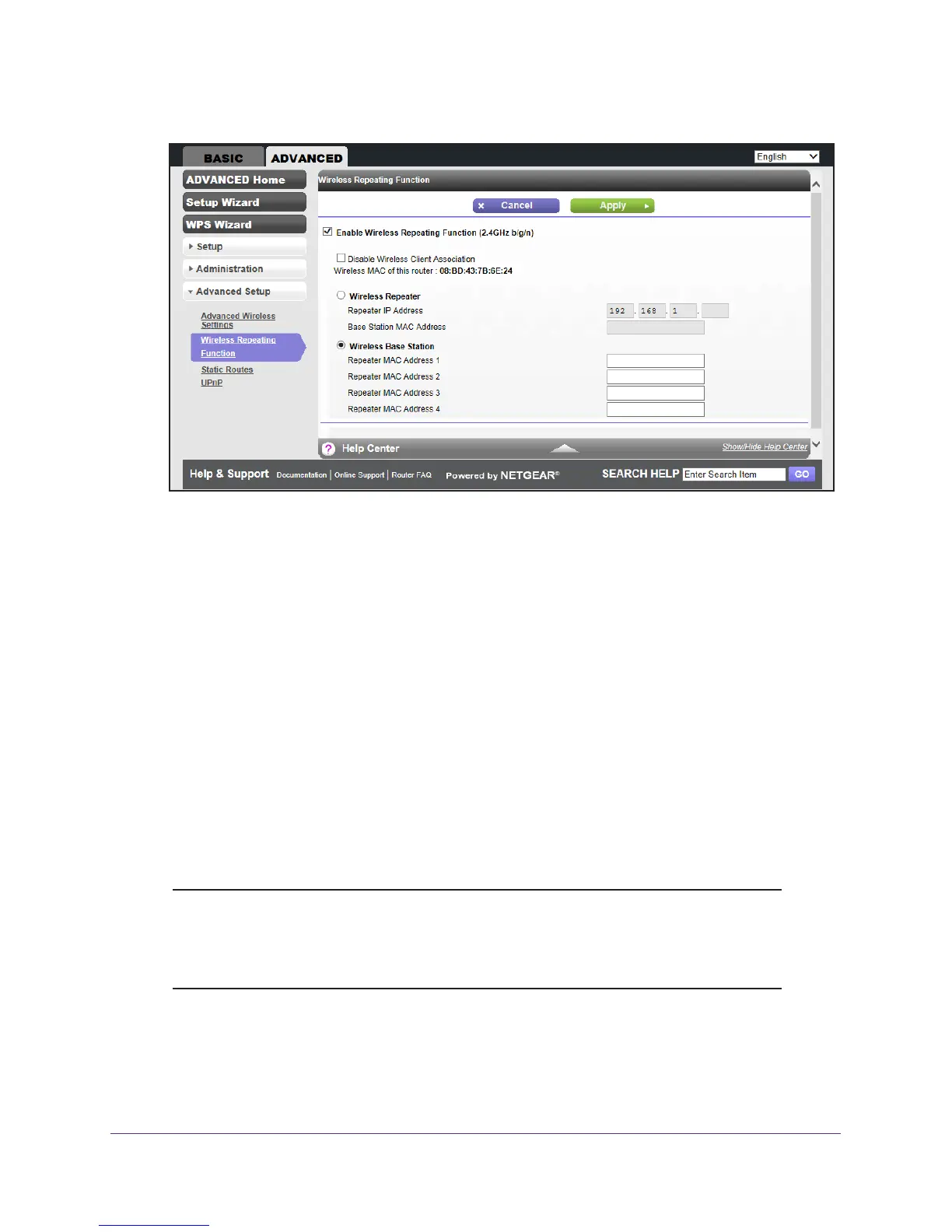 To set up the repeater to avoid conflicts with the wireless connection to the base station, use