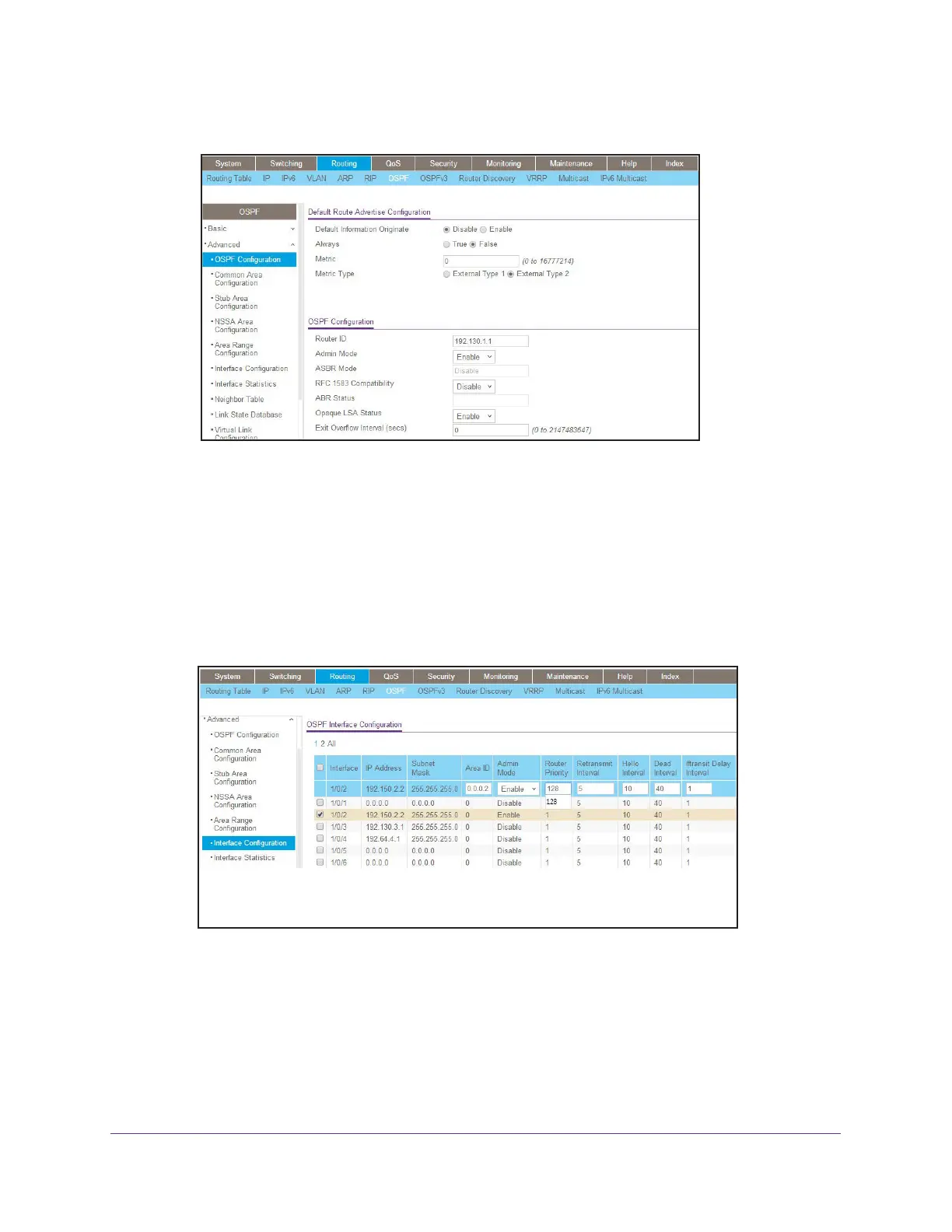 a. Select Routing > OSPF > Advanced > Interface Configuration.