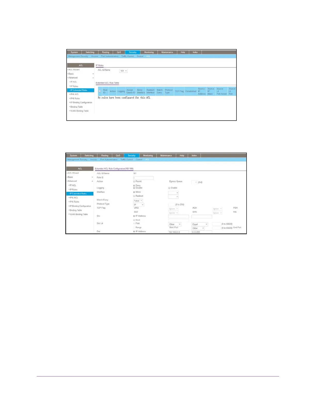 a. Select Security > ACL > Advanced > IP Extended Rules.
