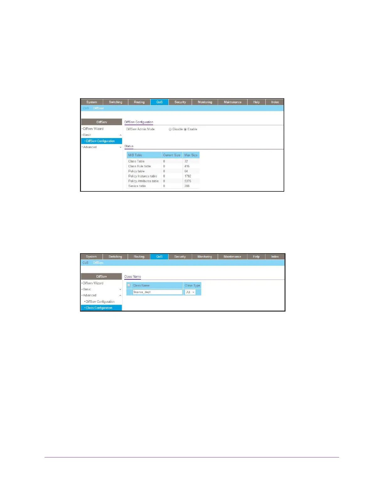 a. Select QoS > DiffServ > Advanced > Class Configuration.
