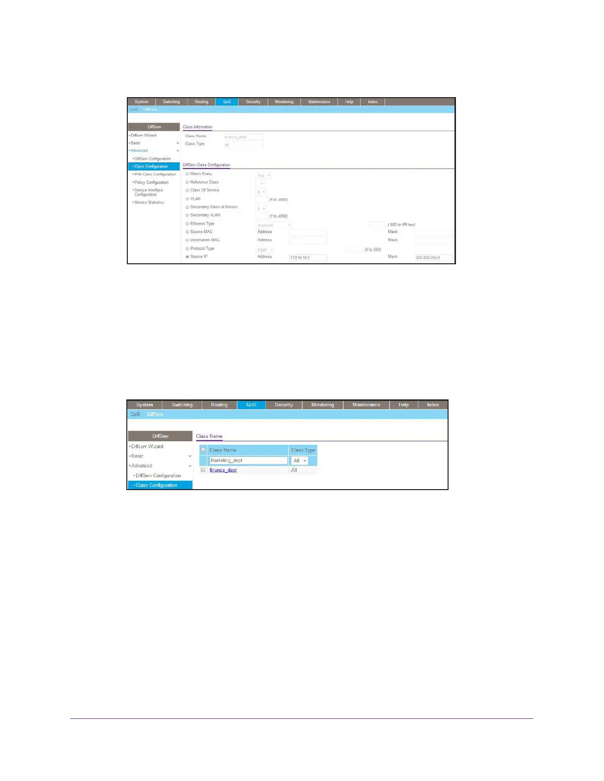a. Select QoS > DiffServ > Advanced >Class Configuration.