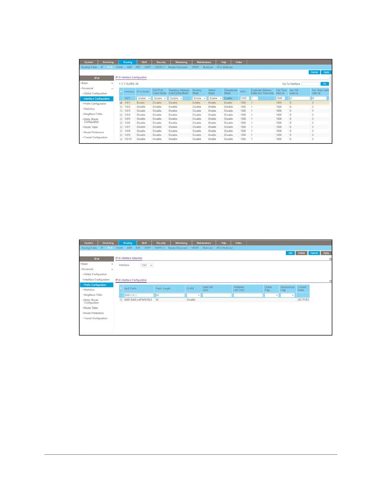 a. Select Routing > IPv6 > Advanced > Prefix Configuration.