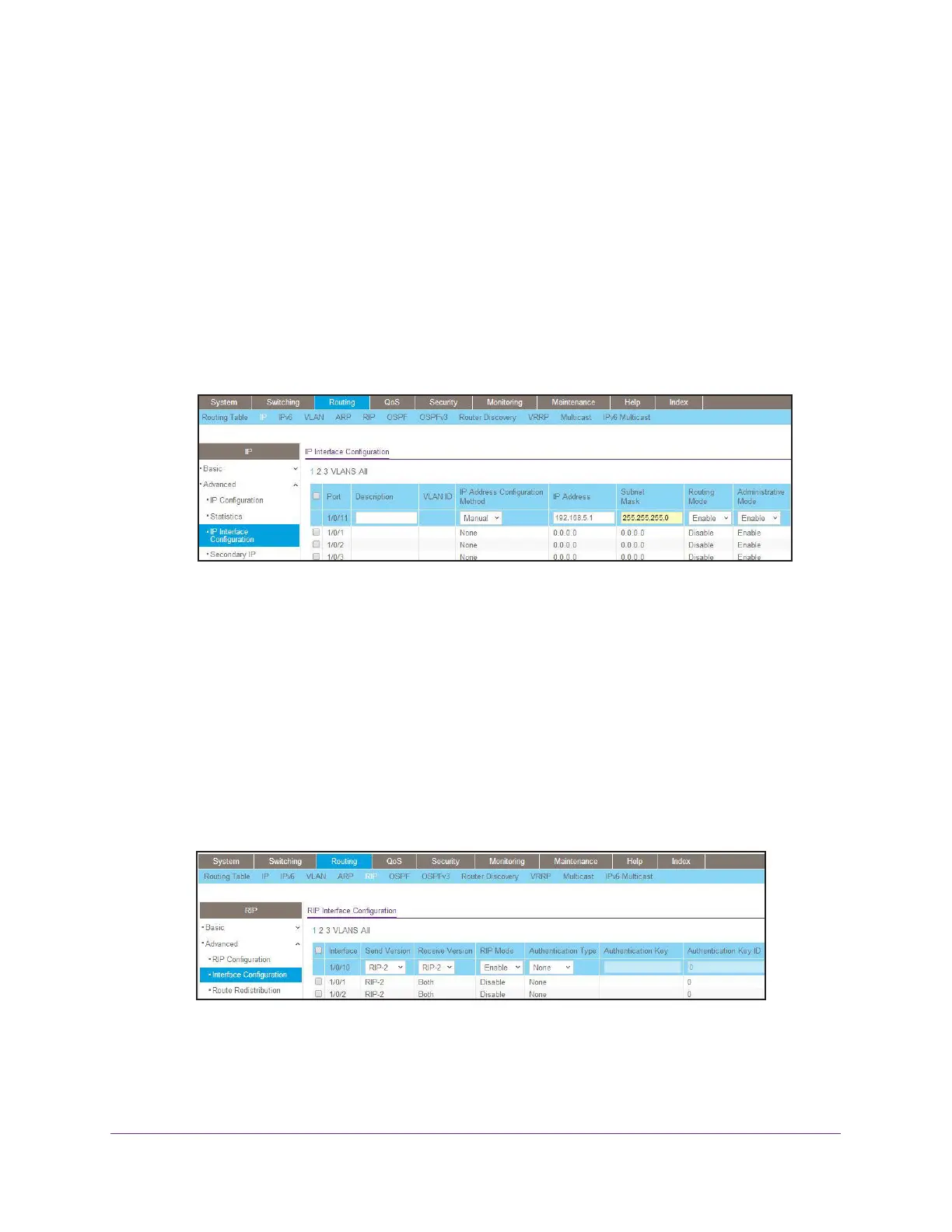a. Select Routing > RIP > Advanced > Interface Configuration.
