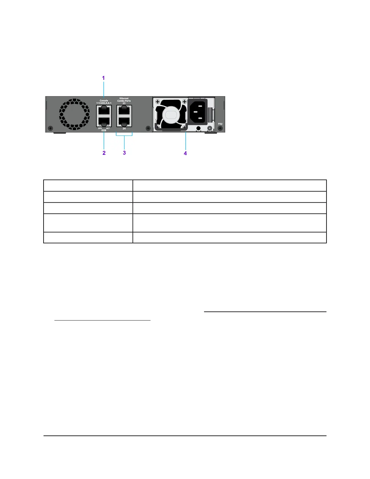 The following figure illustrates the back panel of half-width model M4300-24XF.