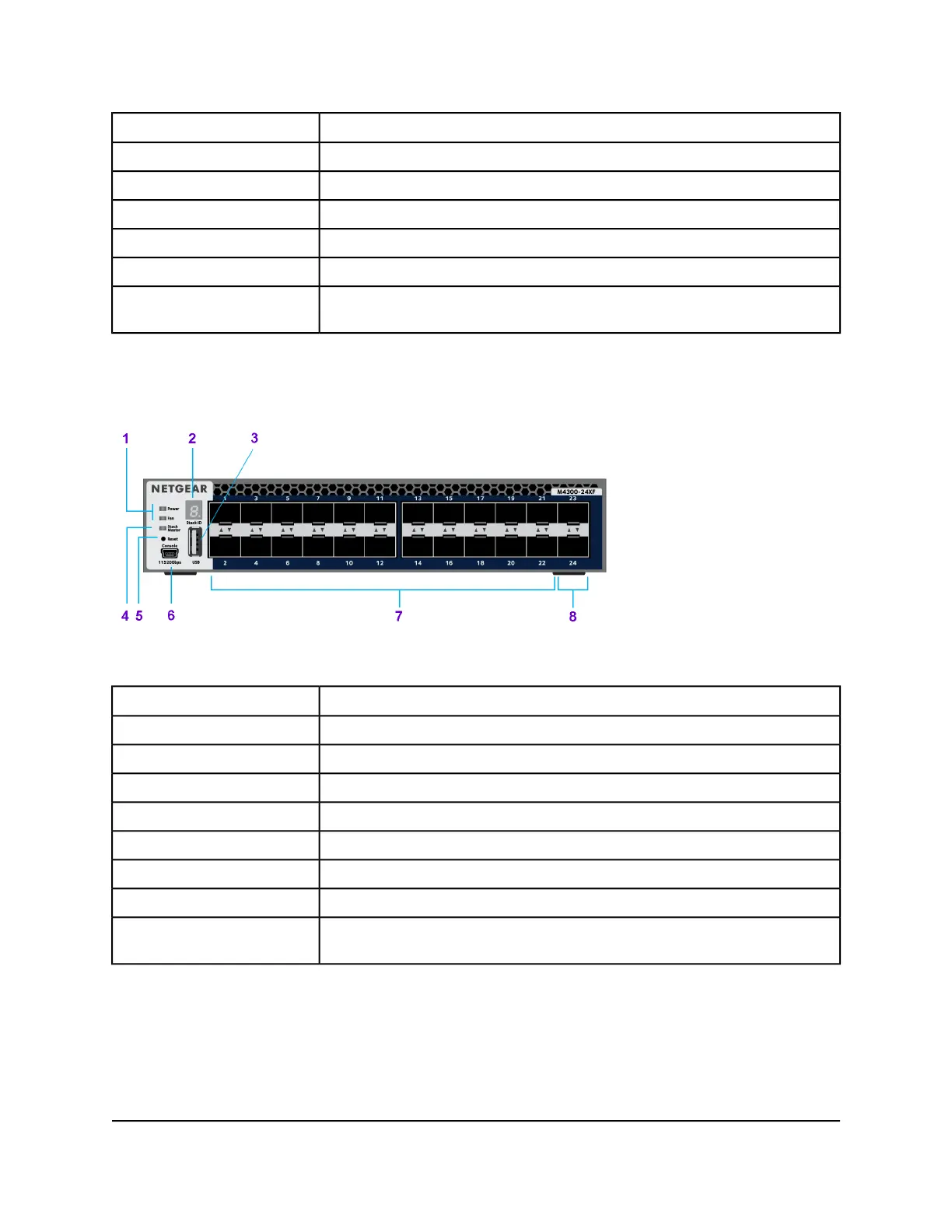 10GBASE-T RJ-45 combo ports (21, 22, 23, and 24), each with a port LED