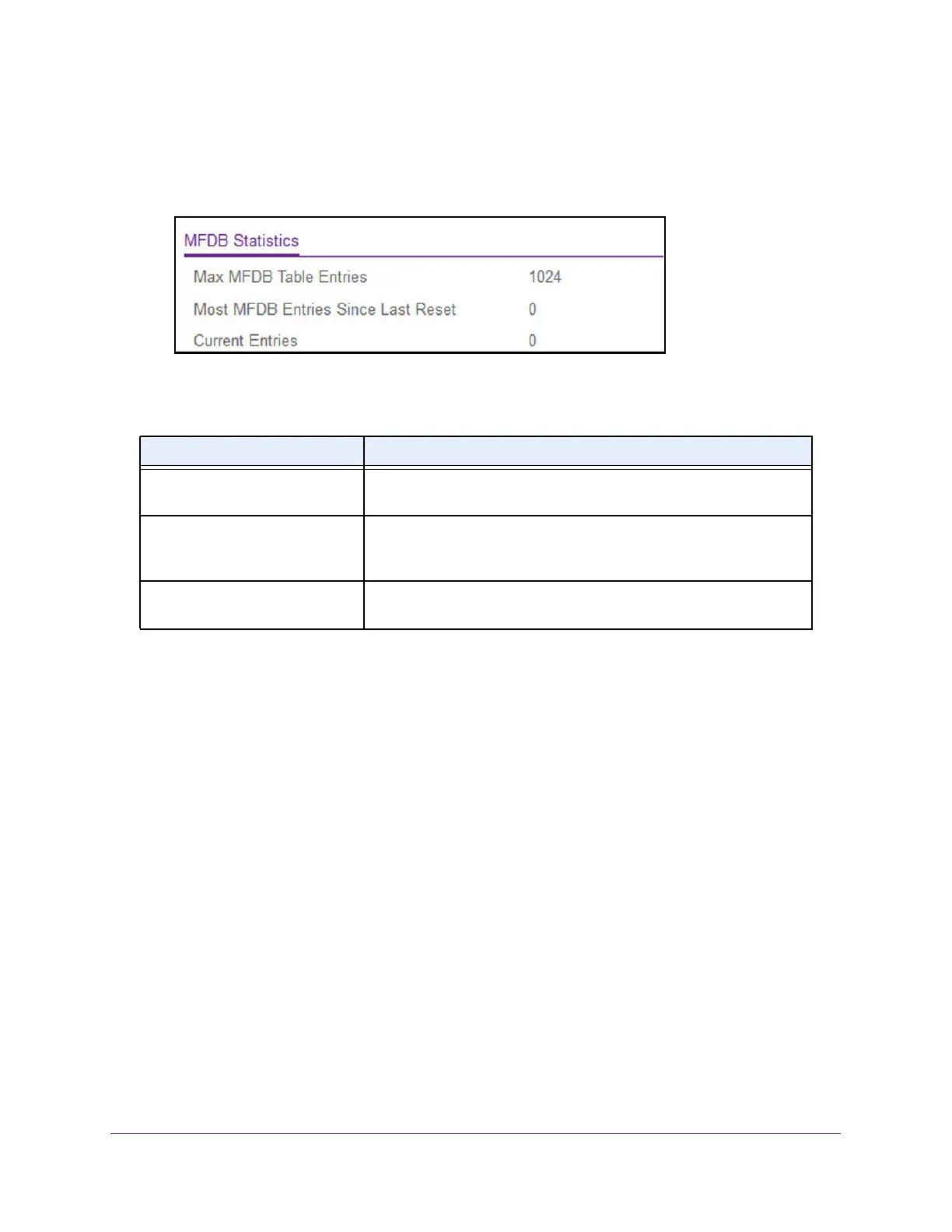5. Select Switching > Multicast > MFDB > MFDB Statistics.