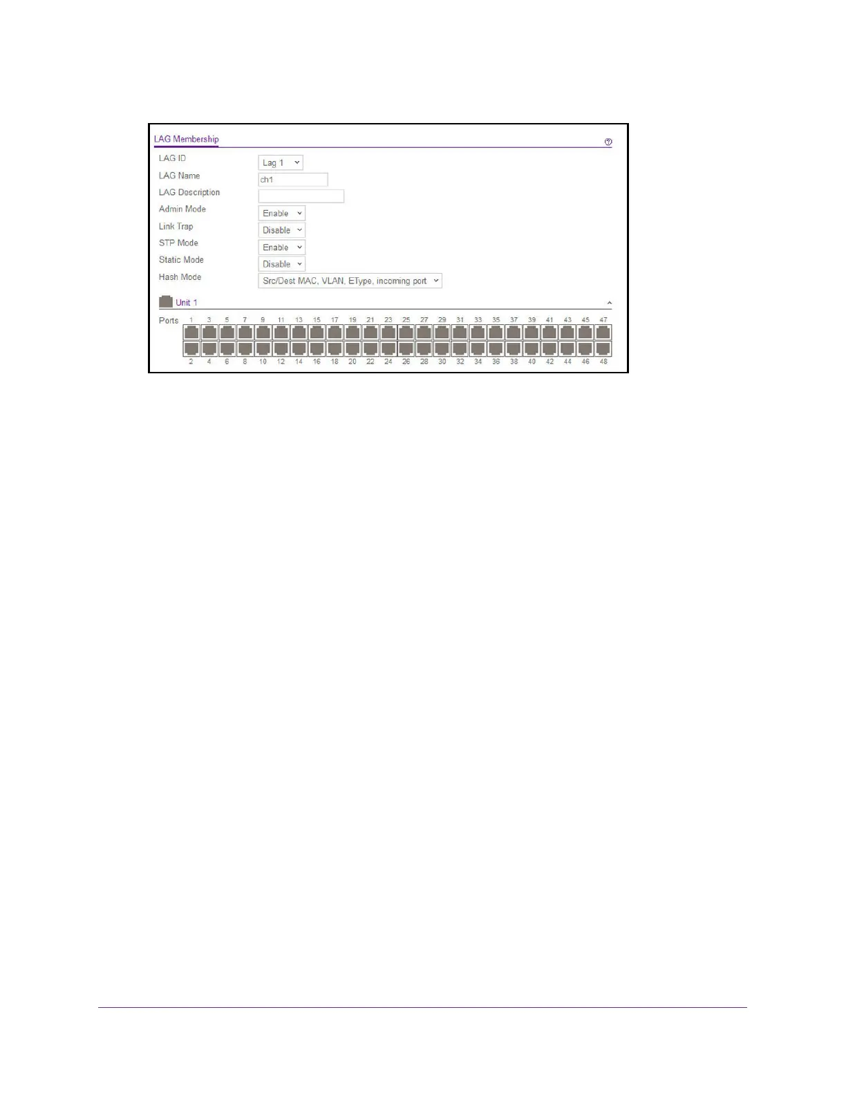• Enable. Spanning tree is enabled for this LAG. Enable is the default.