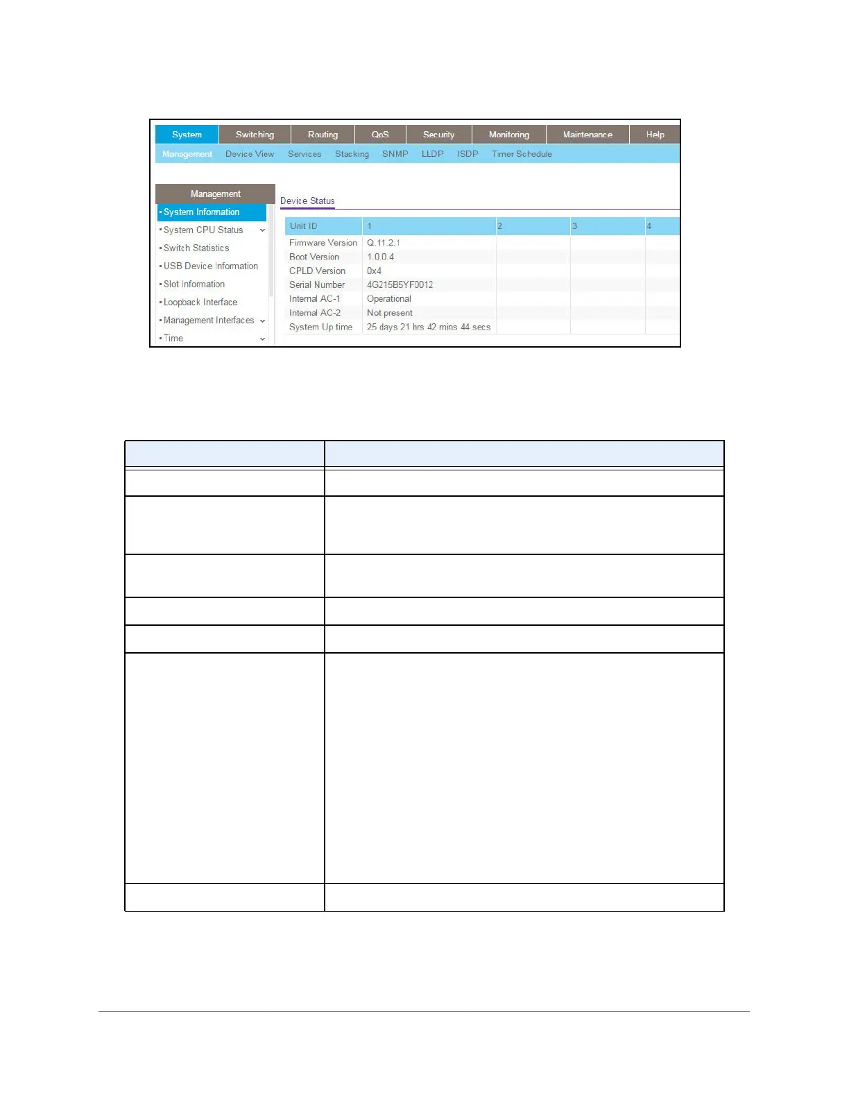 Unit ID The unit number in the switch.