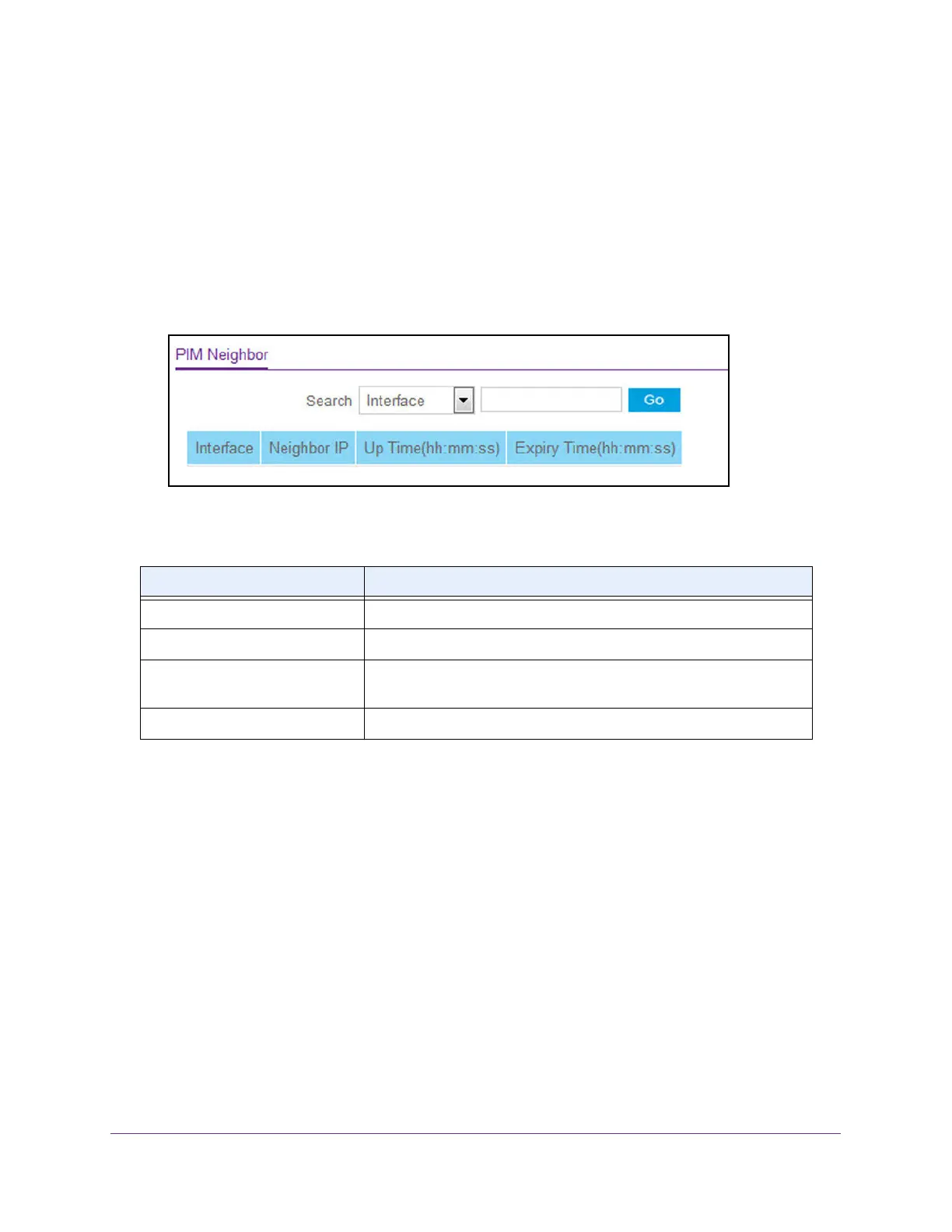 ime (hh:mm:ss) The minimum time remaining before this PIM neighbor is aged out.