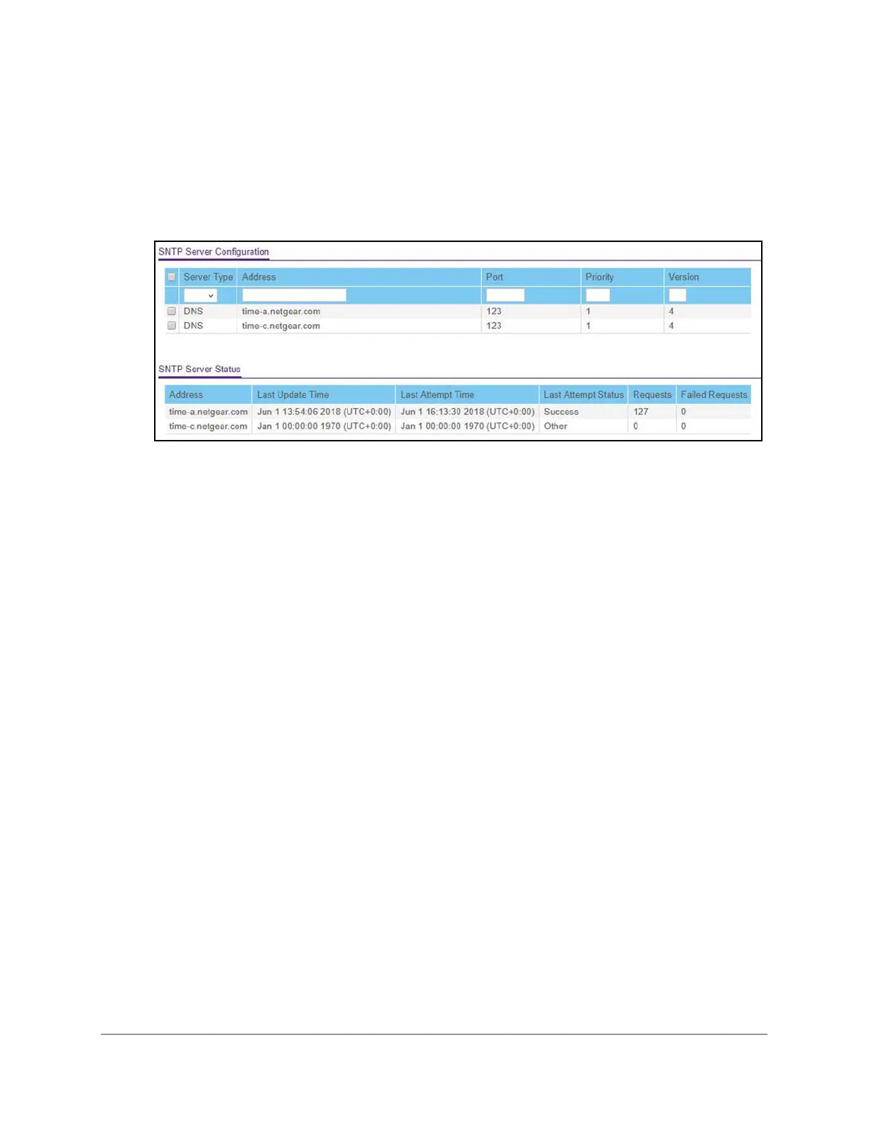 Two SNTP servers exist by default: