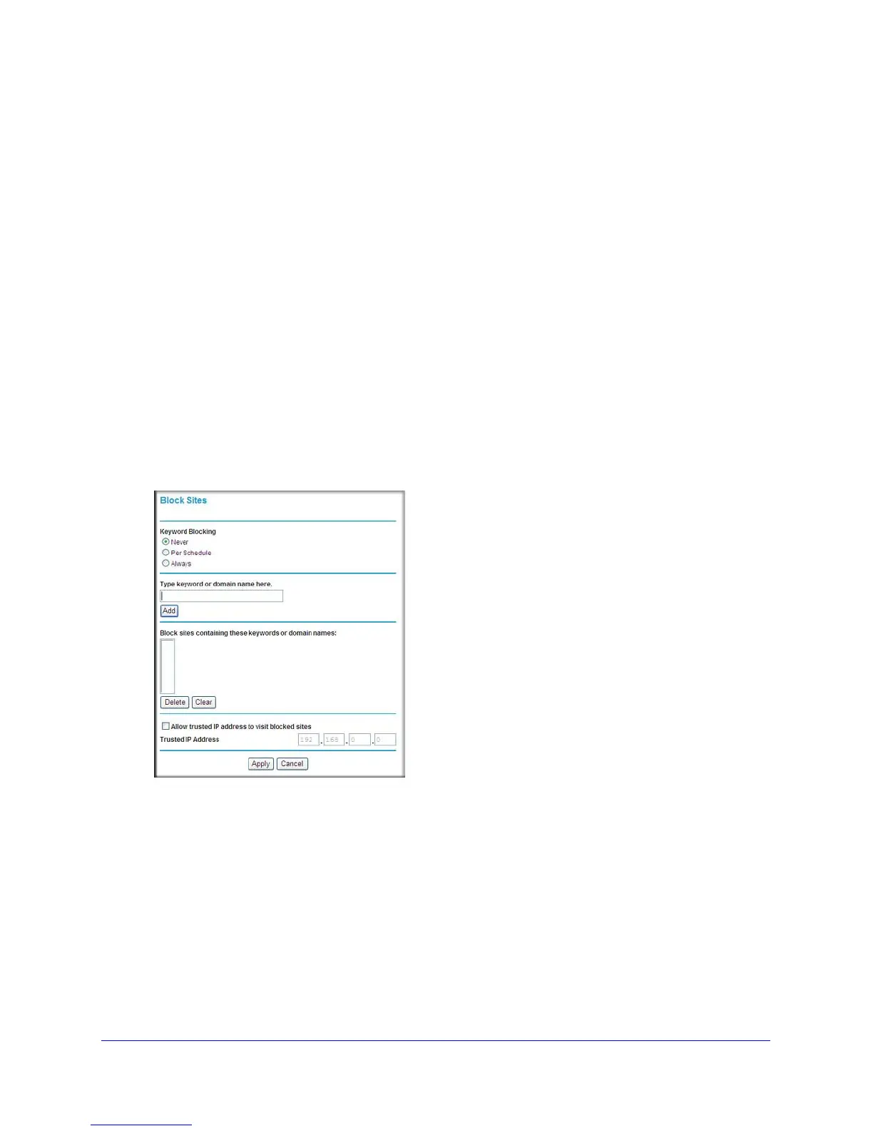 • Per Schedule. Turn on keyword blocking according to the settings on the Schedule