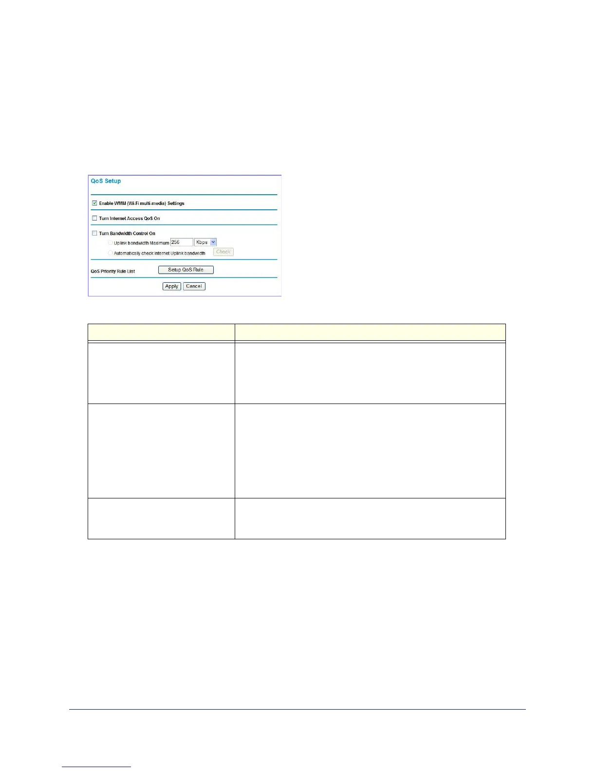 Table 16. QoS Setup