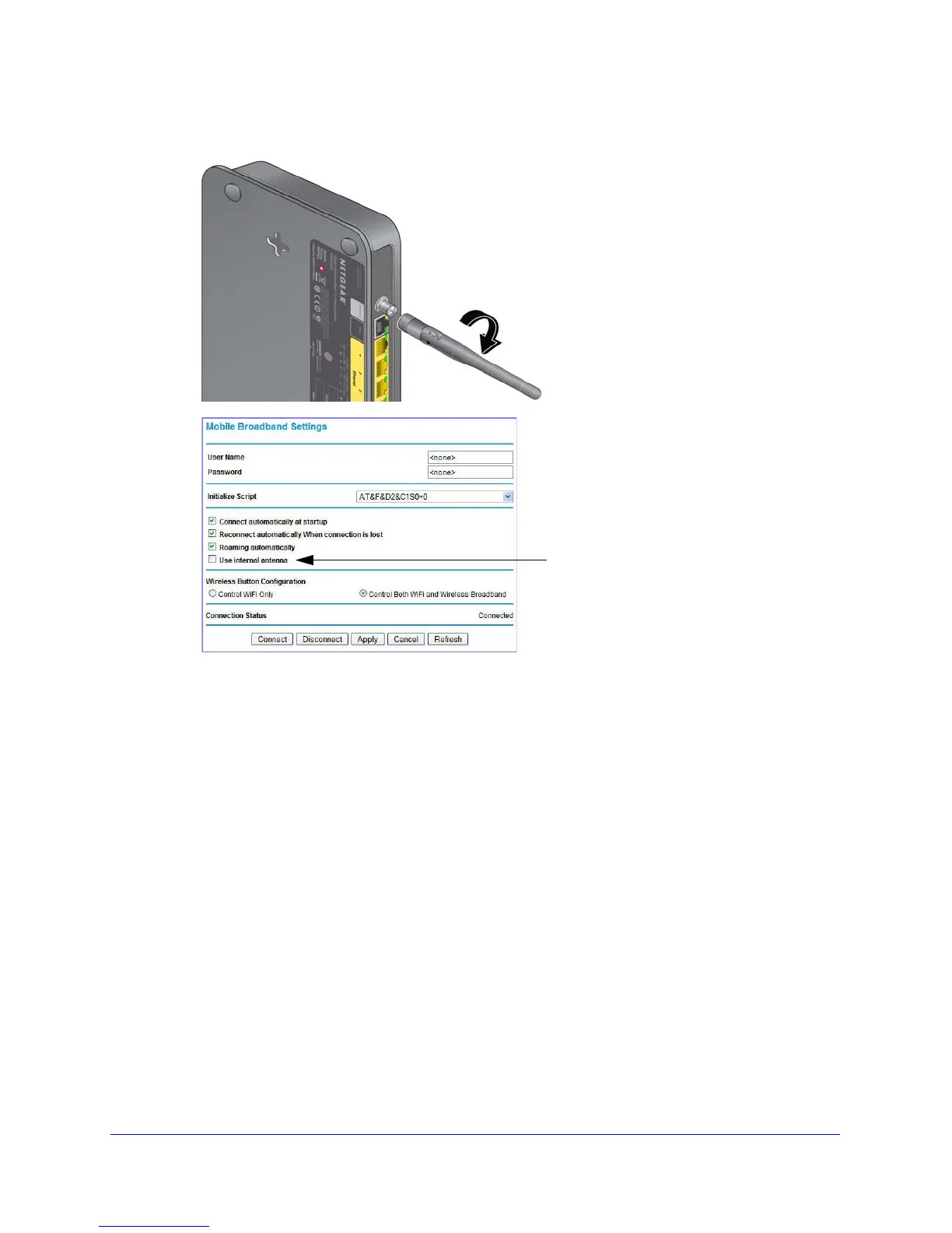b. Clear the Use Internal Antenna