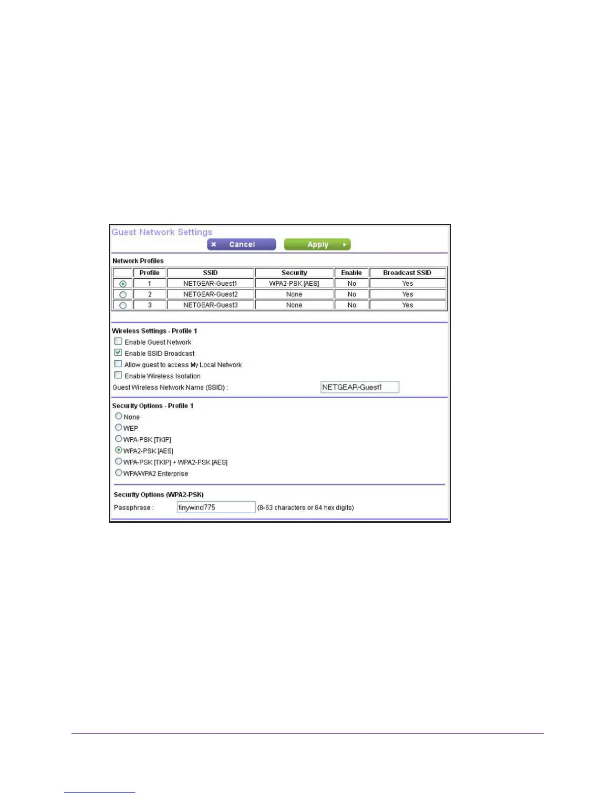 Router Status screen (see View Router Status on page 76). By default, none of the guest