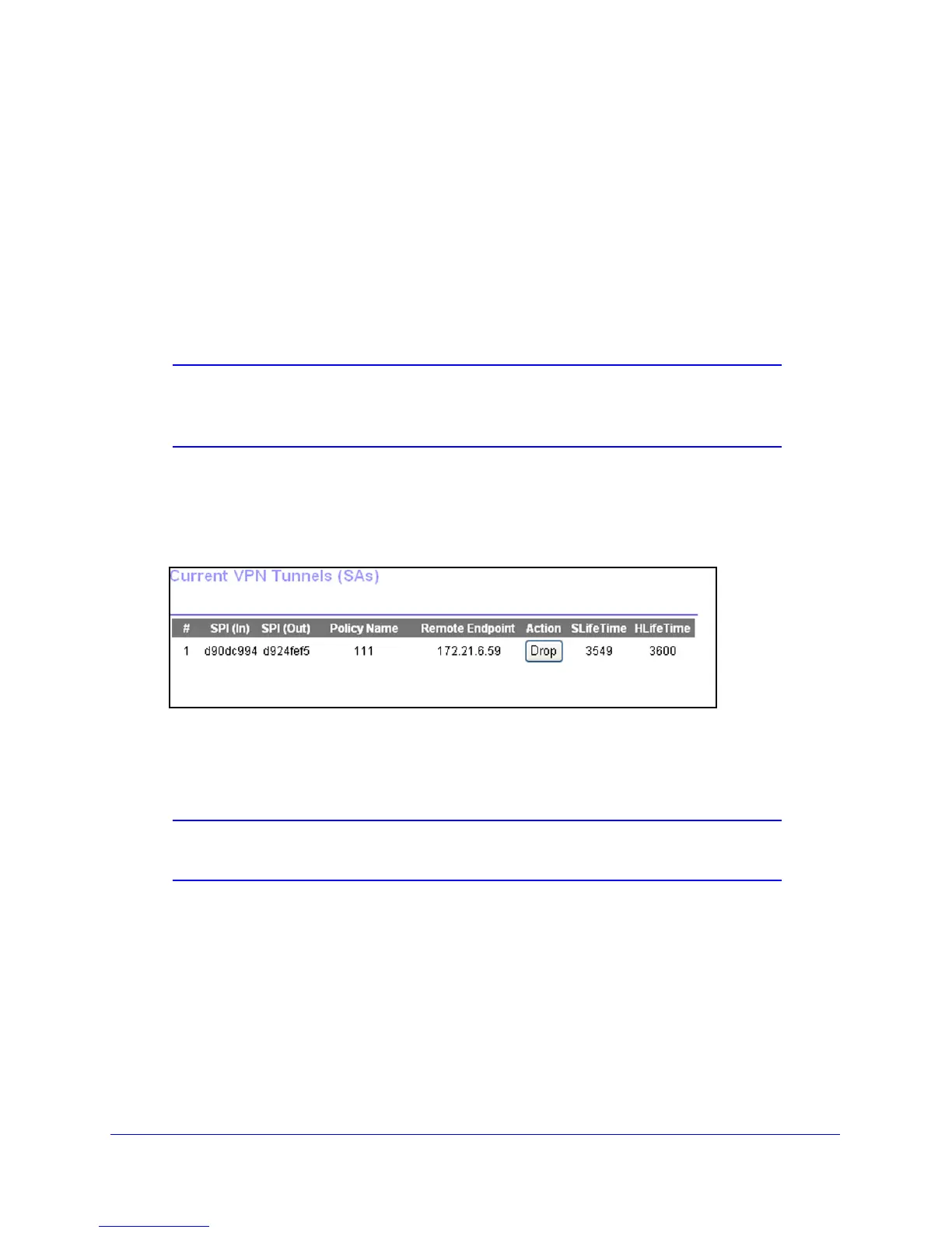 to display the Current VPN Tunnels (SAs) screen: