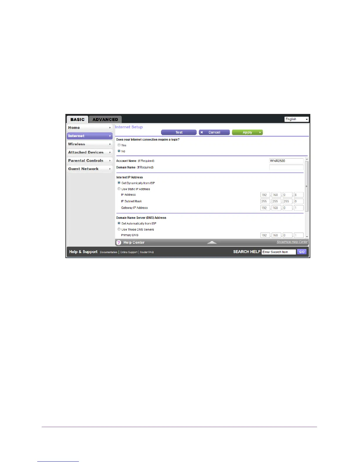 The fields that display in the Internet Setup screen depend on whether your Internet