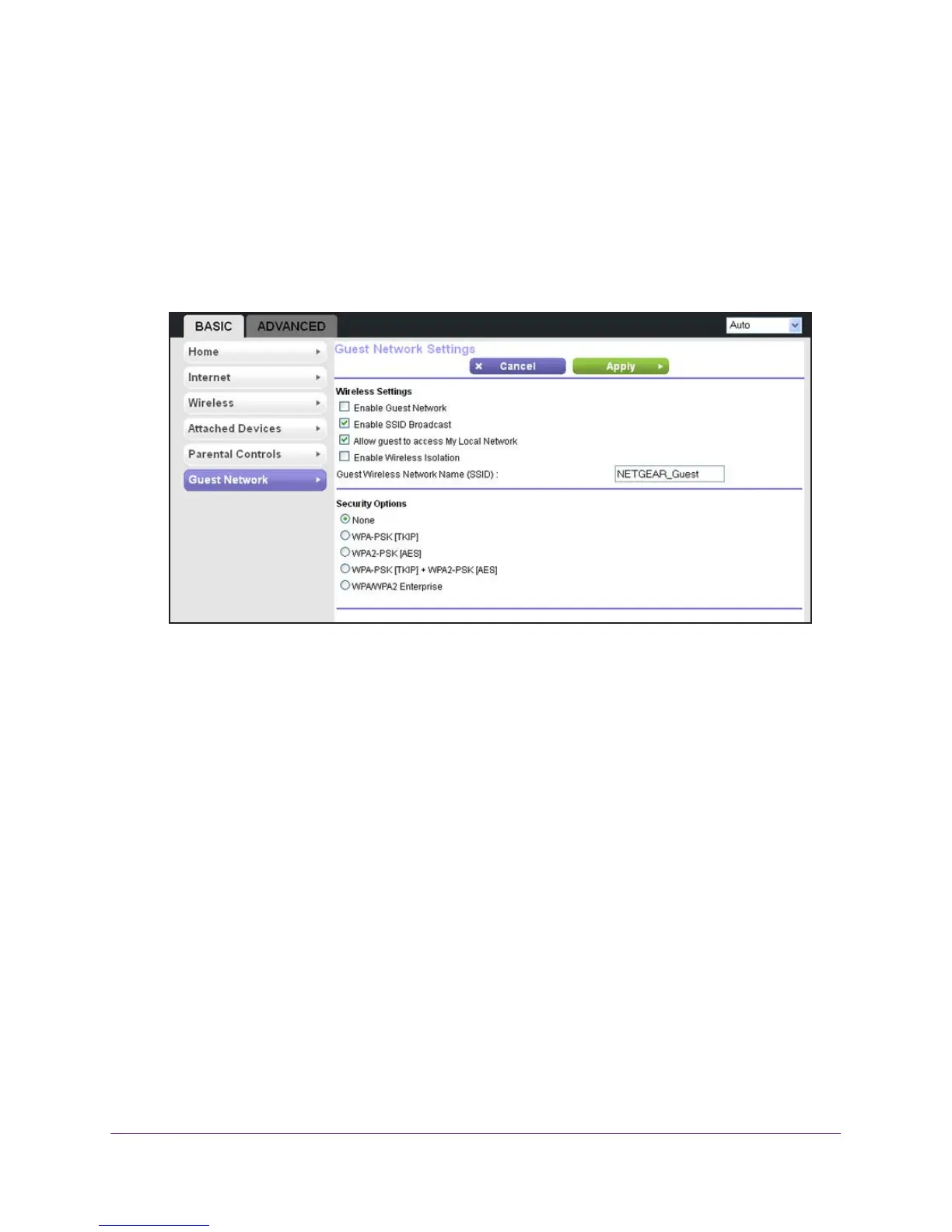 • Enable Guest Network. If this check box is selected, the guest network is enabled,