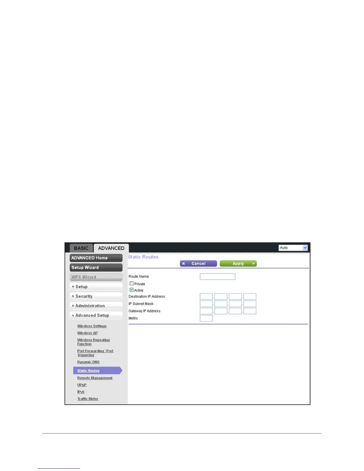 3. In the Route Name field, type a name for this static route (for identification purposes only.)