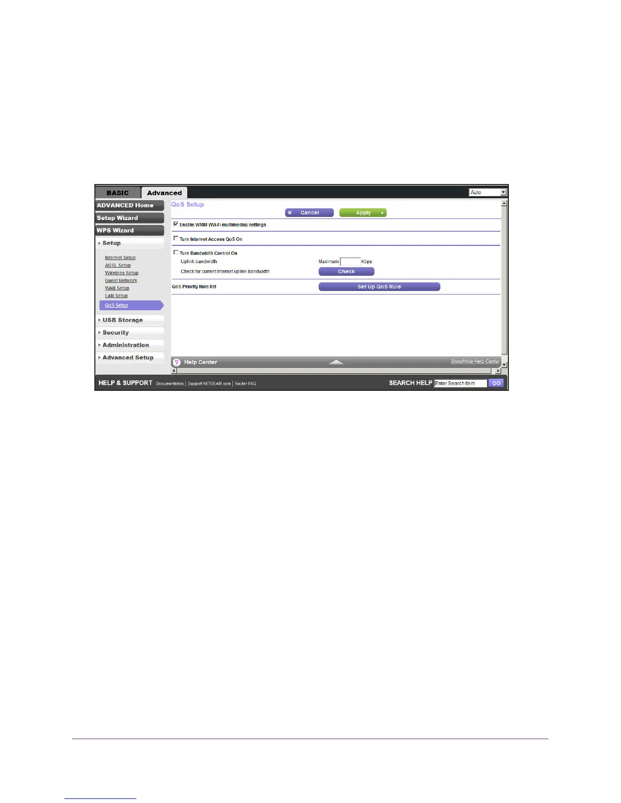 the Internet connection. To configure QoS, use the QoS Setup screen.