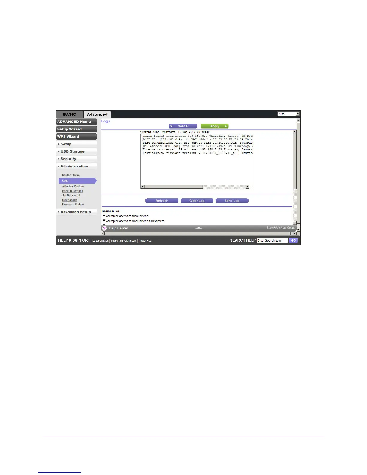 Select Advanced > Administration > Logs. The Logs screen displays.