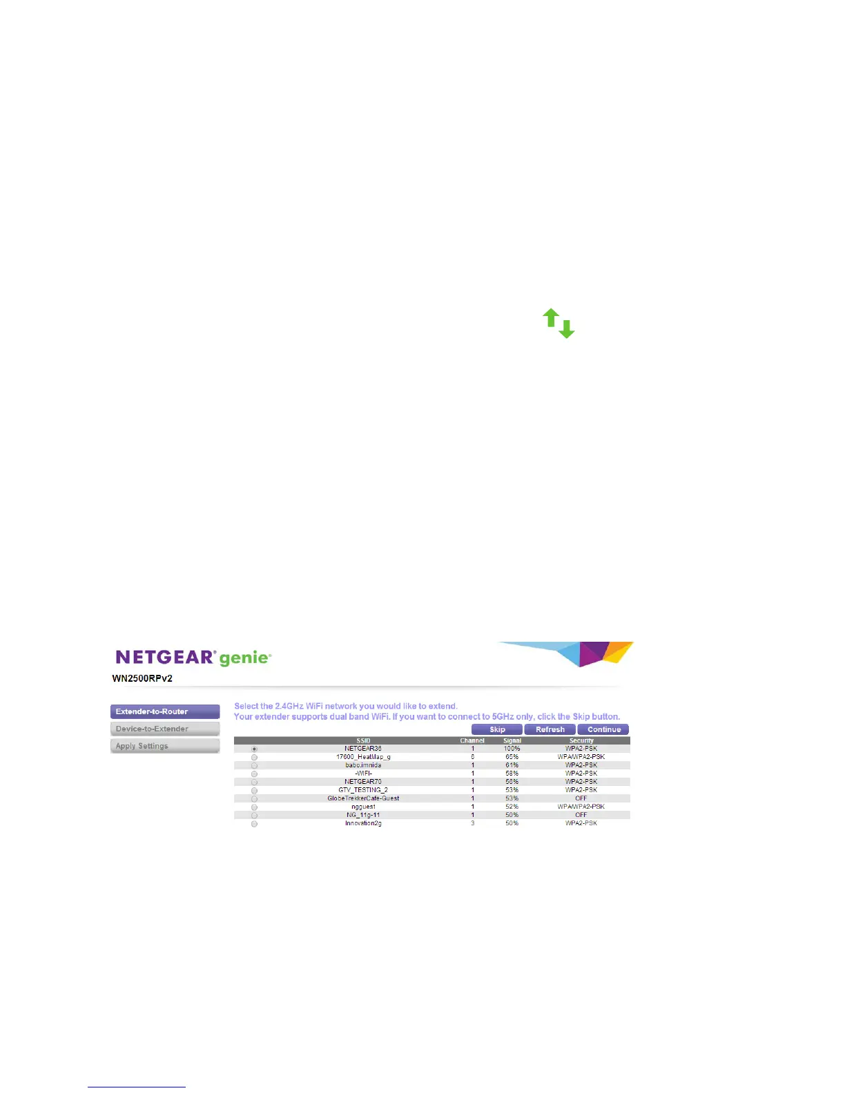 3. Select a 2.4 GHz WiFi network to extend and click the Continue