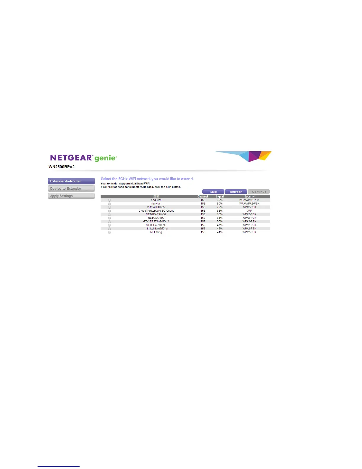 5. Select a 5 GHz WiFi network and click the Continue button.