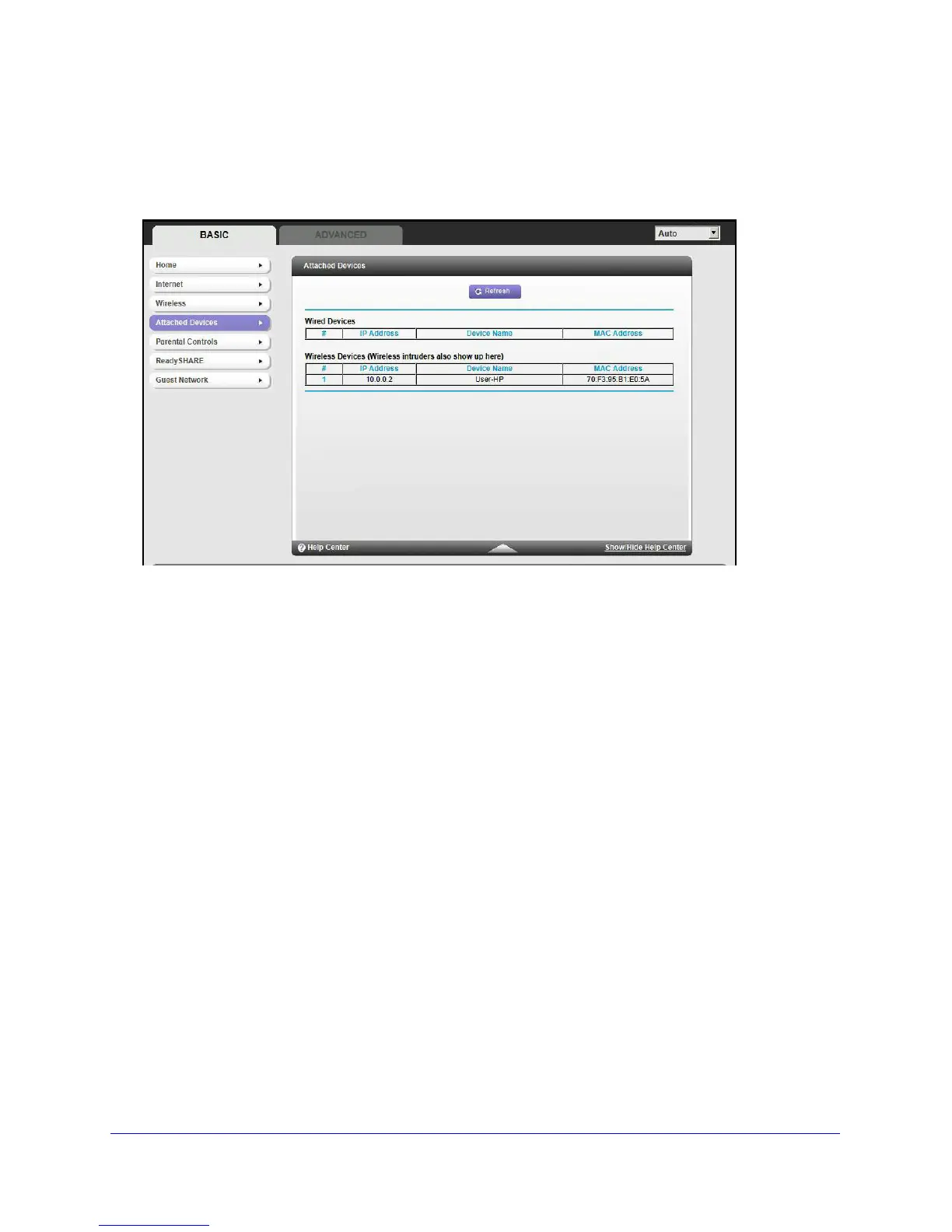 here. From the Basic Home screen, select Attached Devices to display the following screen: