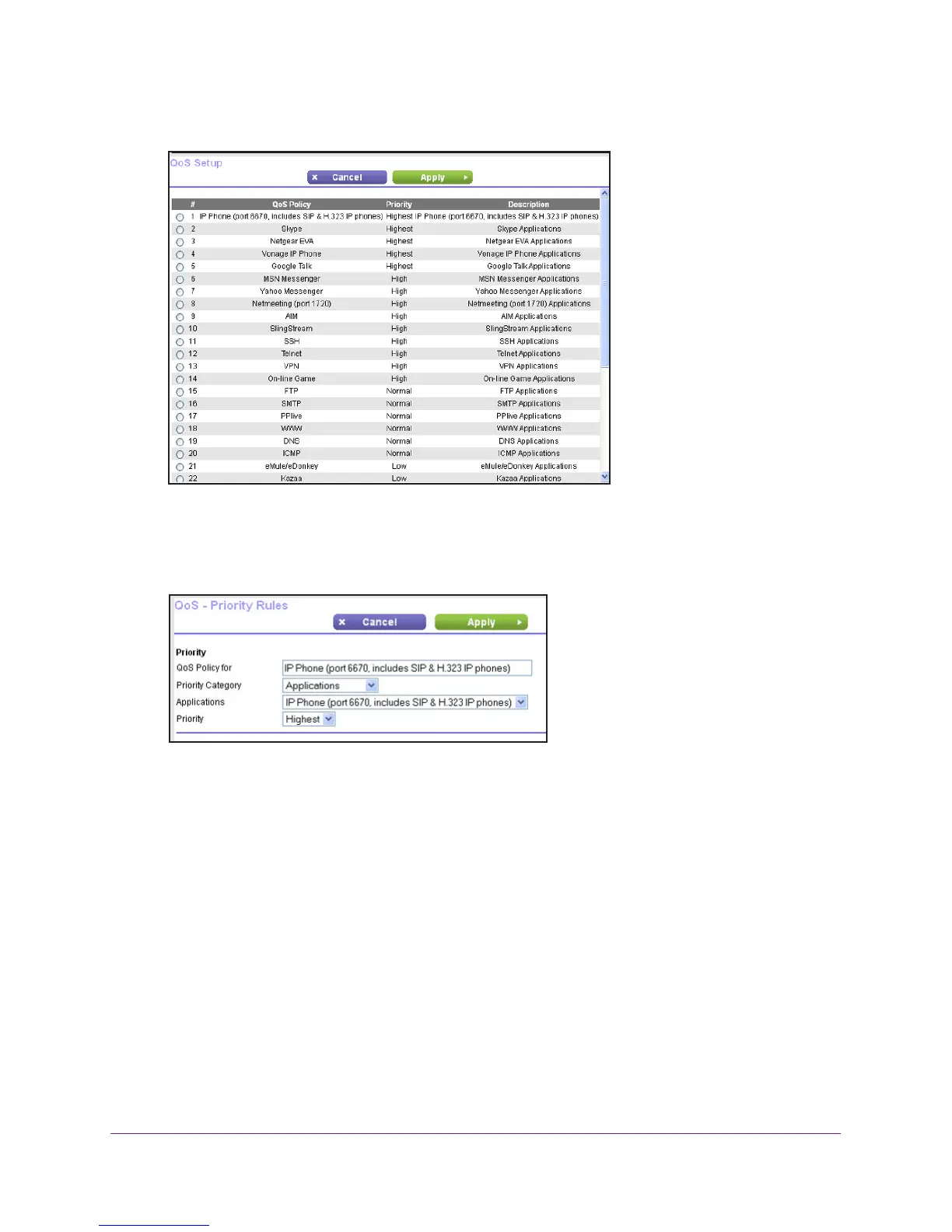 1. Select Advanced > Setup > QoS Setup to display the QoS Setup screen.