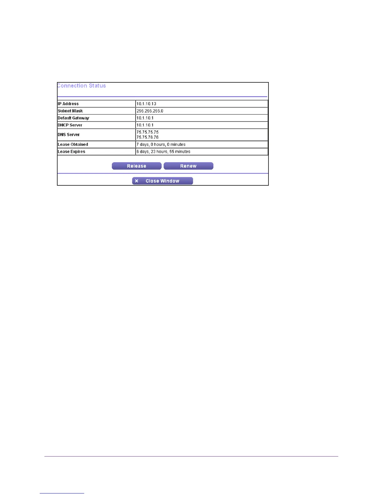 On the Router Status screen in the Internet Port pane, click the Connection Status button to