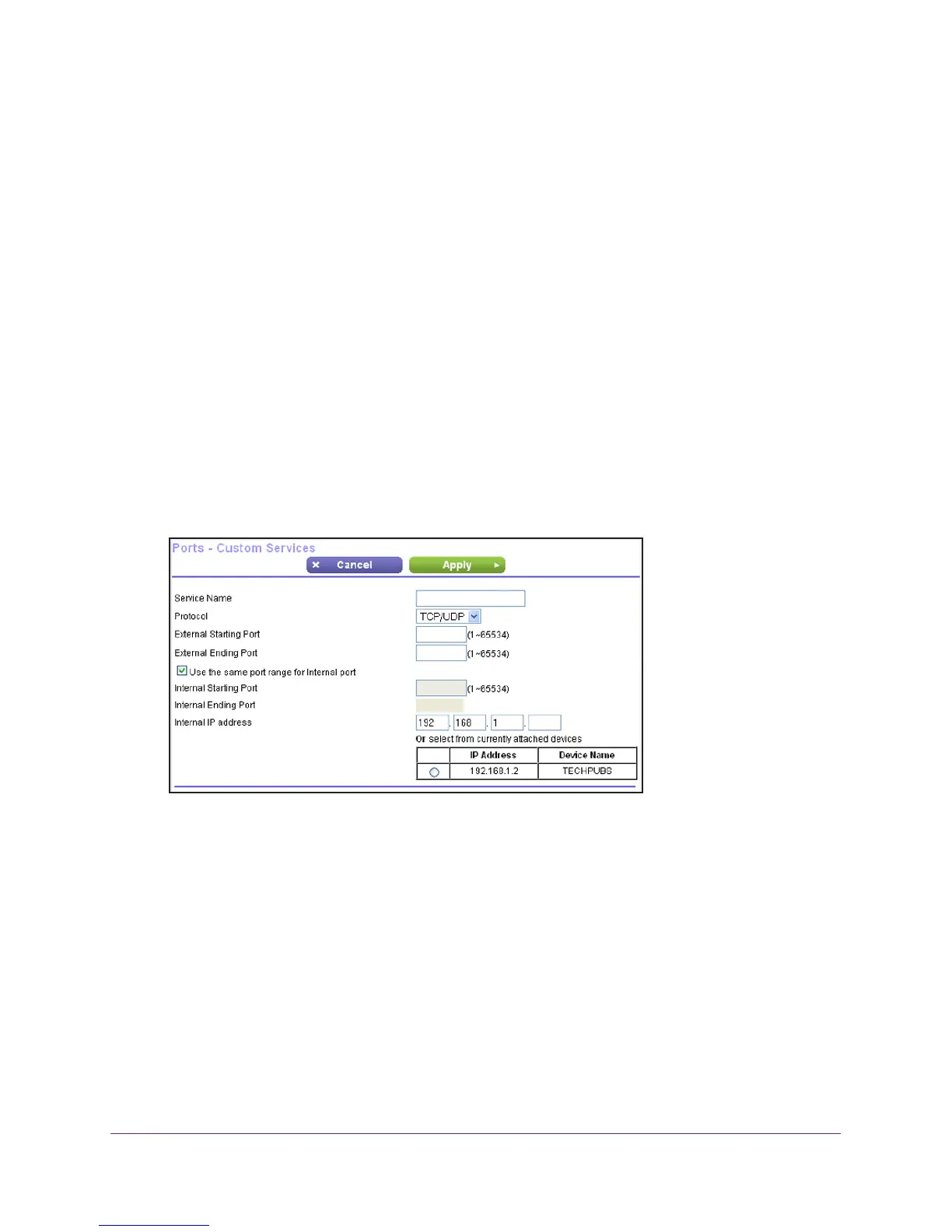 • Use the same port range for Internal port.