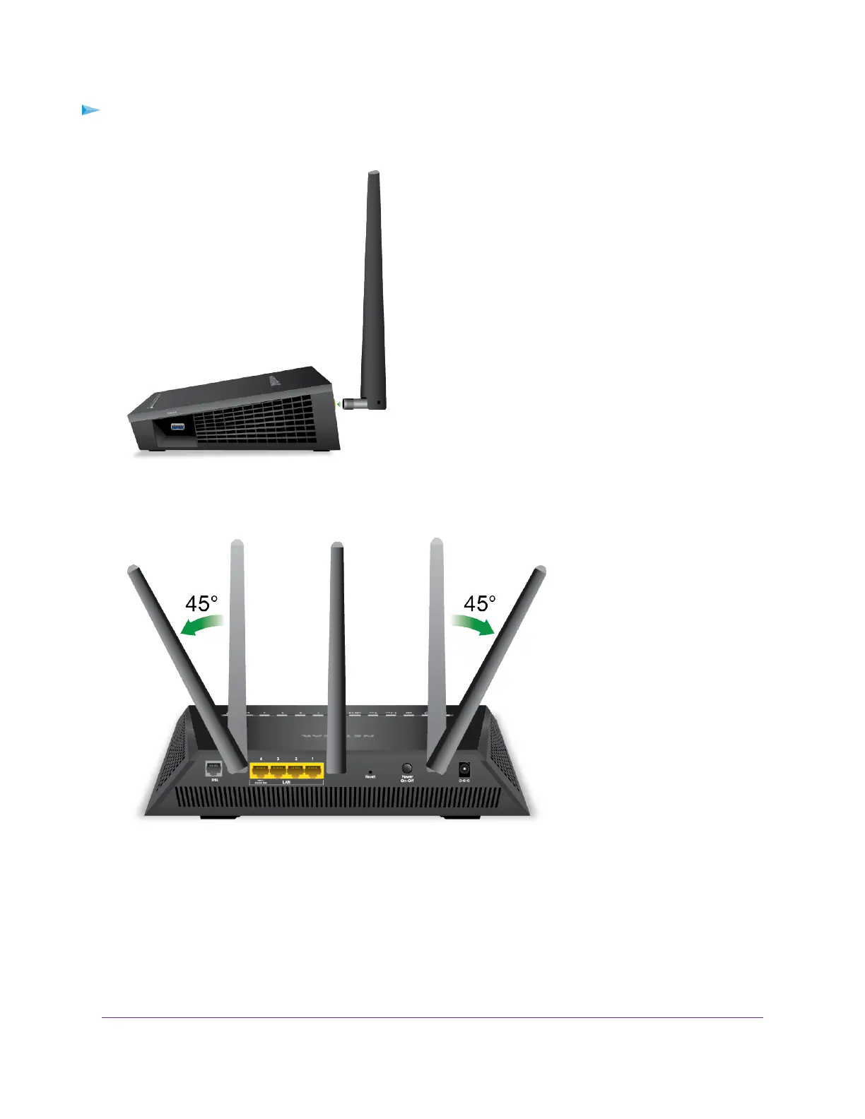 We recommend that the center antenna be vertical and that you aim the others outward at 45-degree
