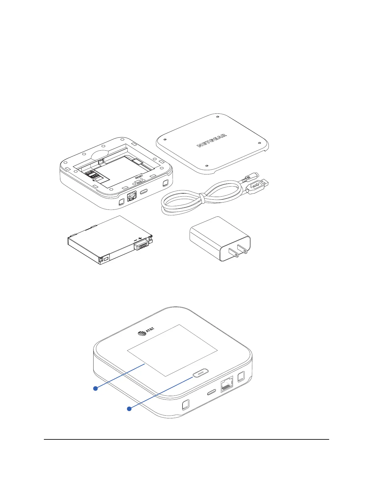 The Nighthawk M7 package includes your mobile hotspot, a battery, a USB-A to USB-C