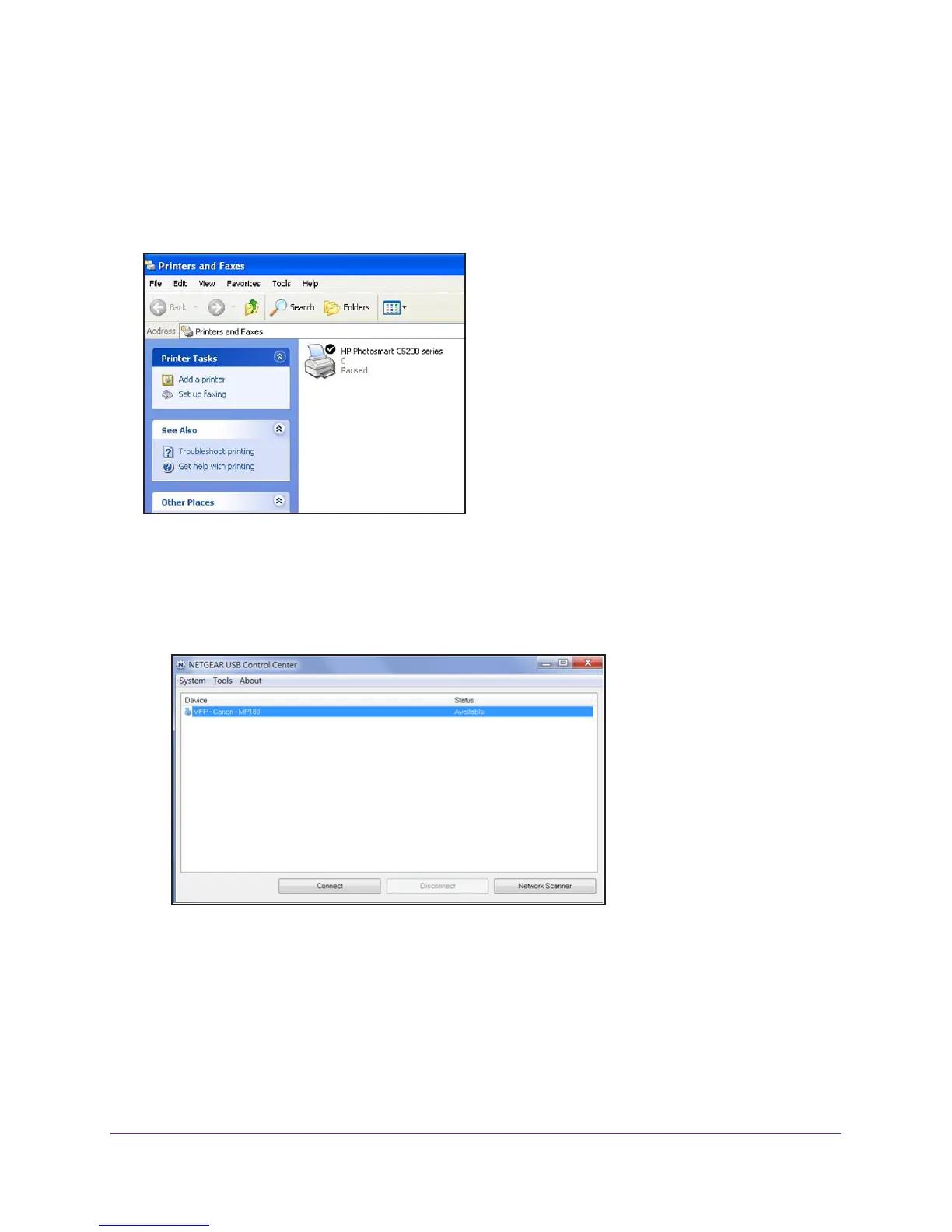 example, the USB printer displayed in the Windows Printers and Faxes window is ready for