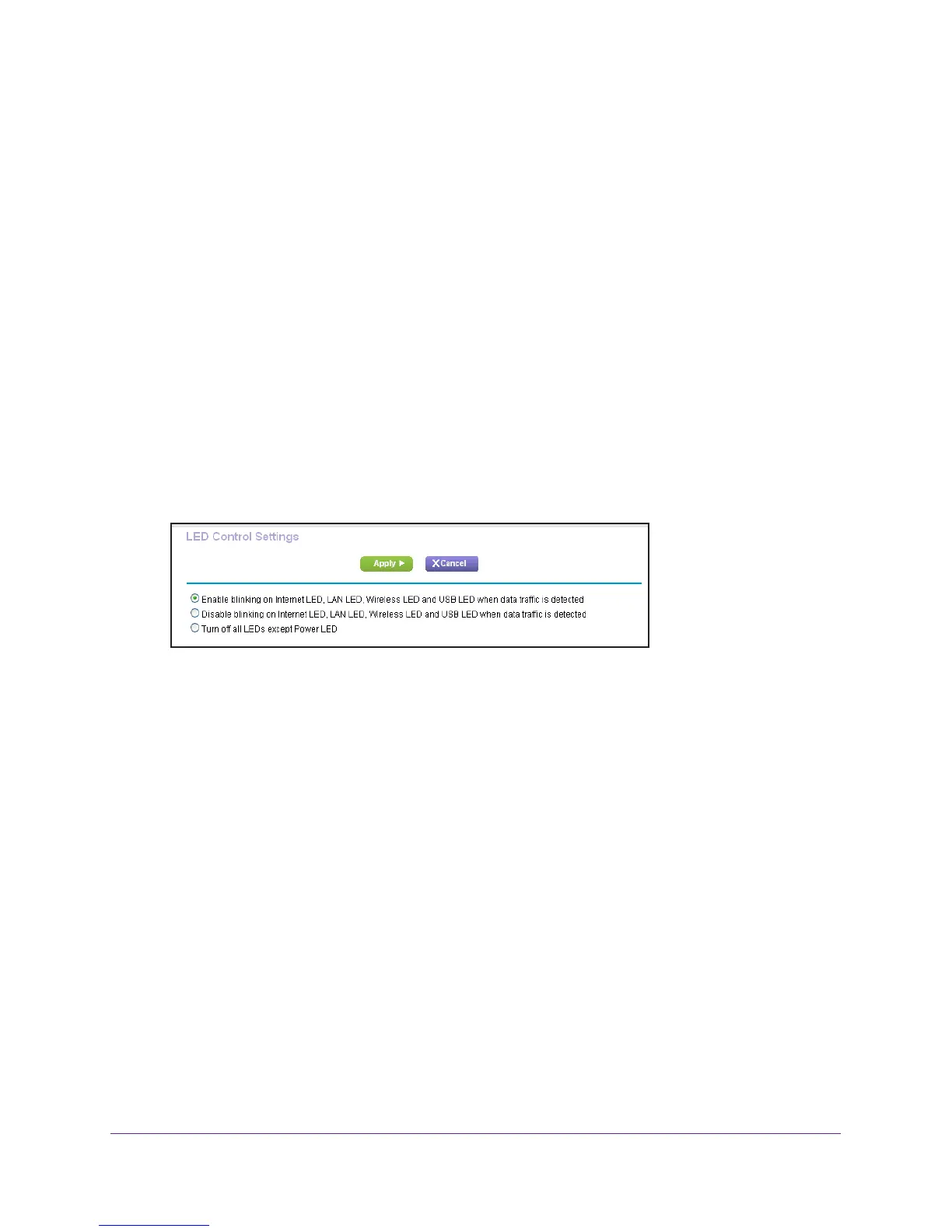 o disable blinking, select this radio button: Disable blinking on Internet LED, LAN LED,
