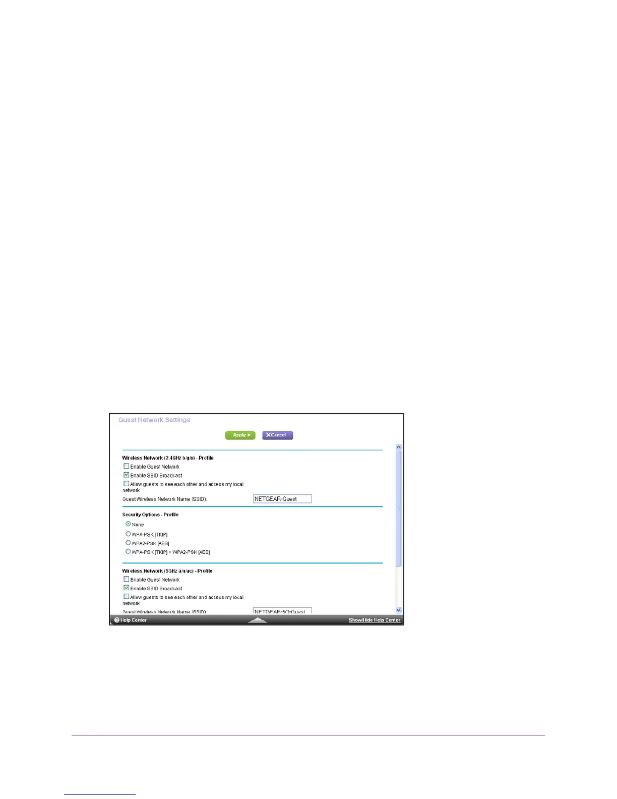 security key. You can add a guest network to each wireless network: 2.4 GHz b/g/n and