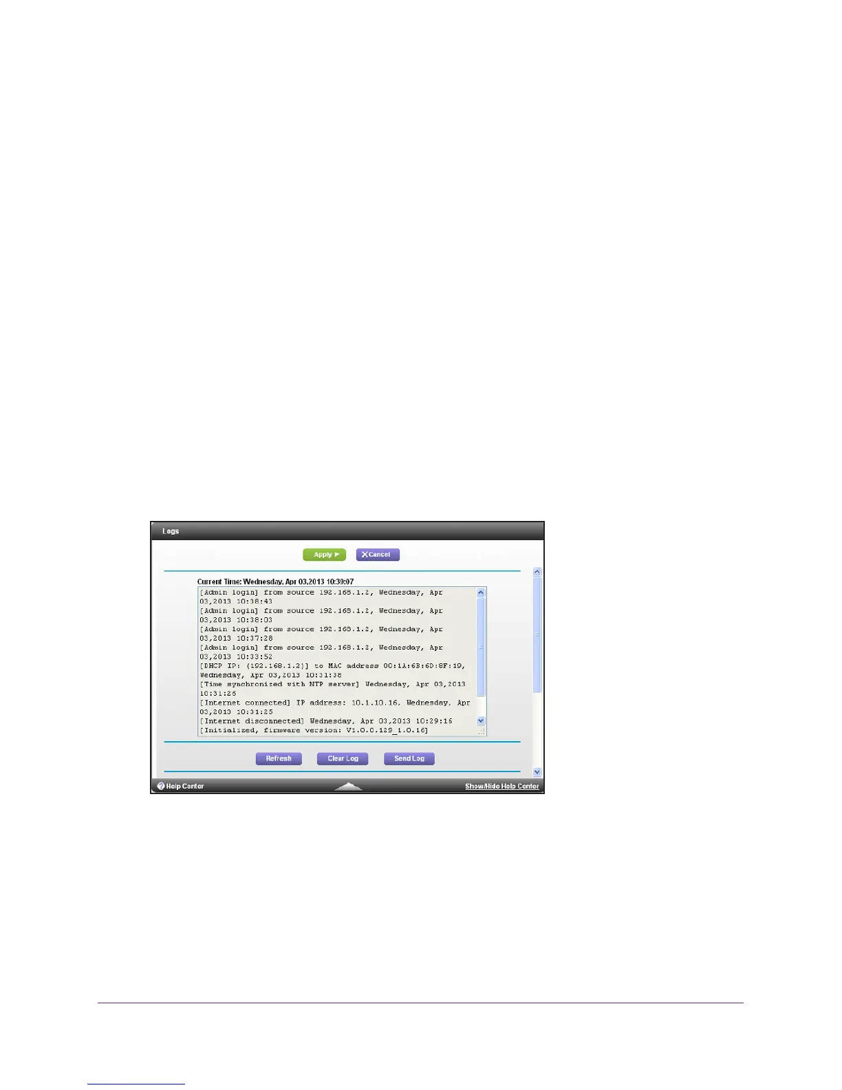 other router actions. Up to 256 entries are stored in the log. Log entries display only when