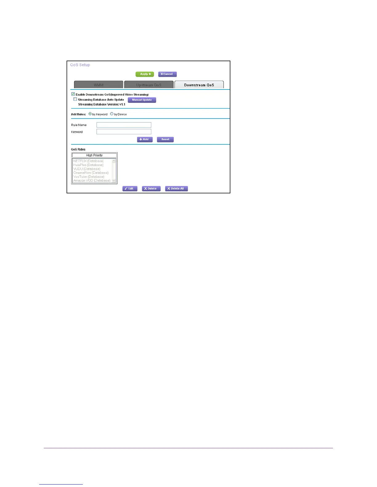 4. Select ADVANCED > Setup > QoS Setup > Downstream QoS.